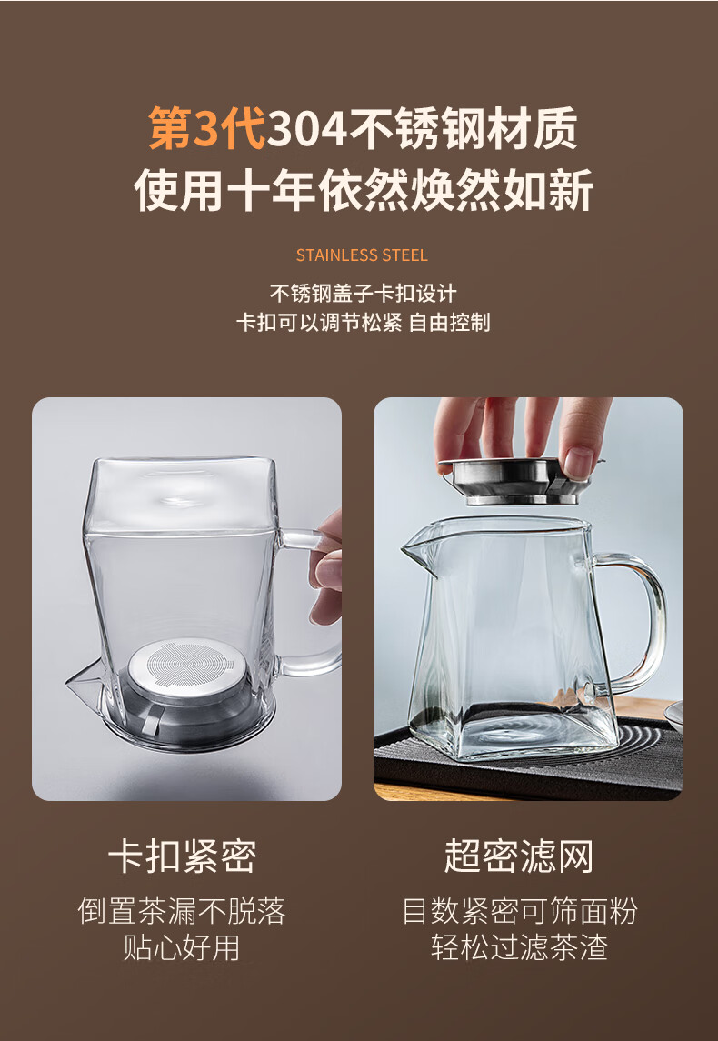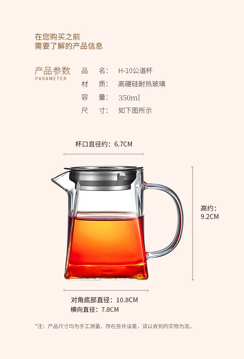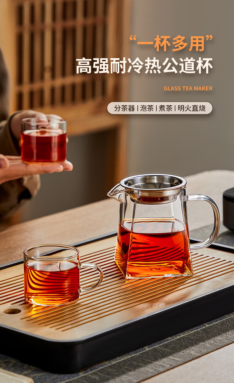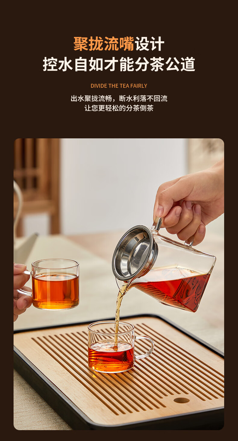 Yihutea (YIHUTEA) glass fair cup with filter tea drain set tea set accessories tea sea tea divider thickened Kung Fu tea cup large fair cup 350ml + tea drain