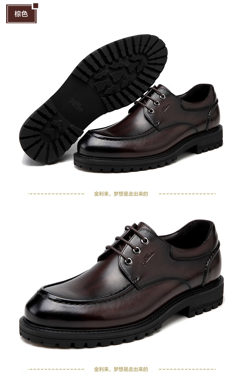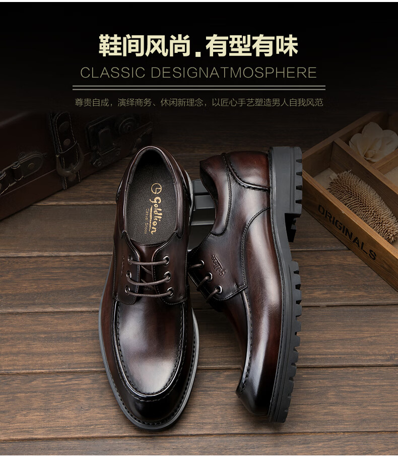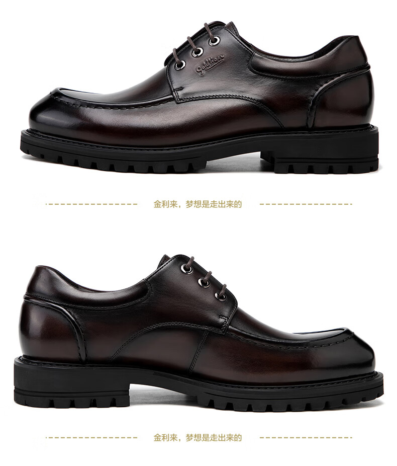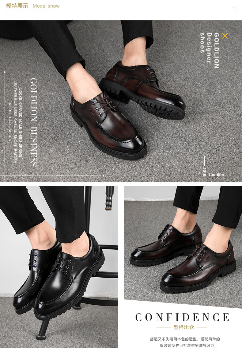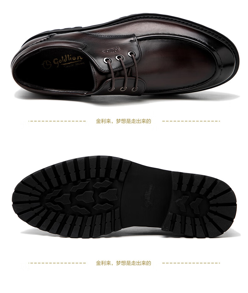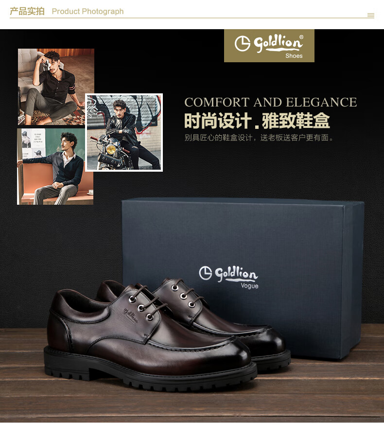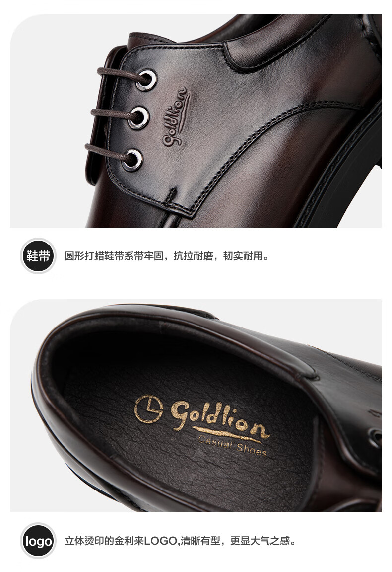 Goldlion men's shoes winter new men's thick-soled formal leather shoes men's round-toe business casual shoes plus velvet warm cotton shoes men's trendy brown lace 58093041040A 41