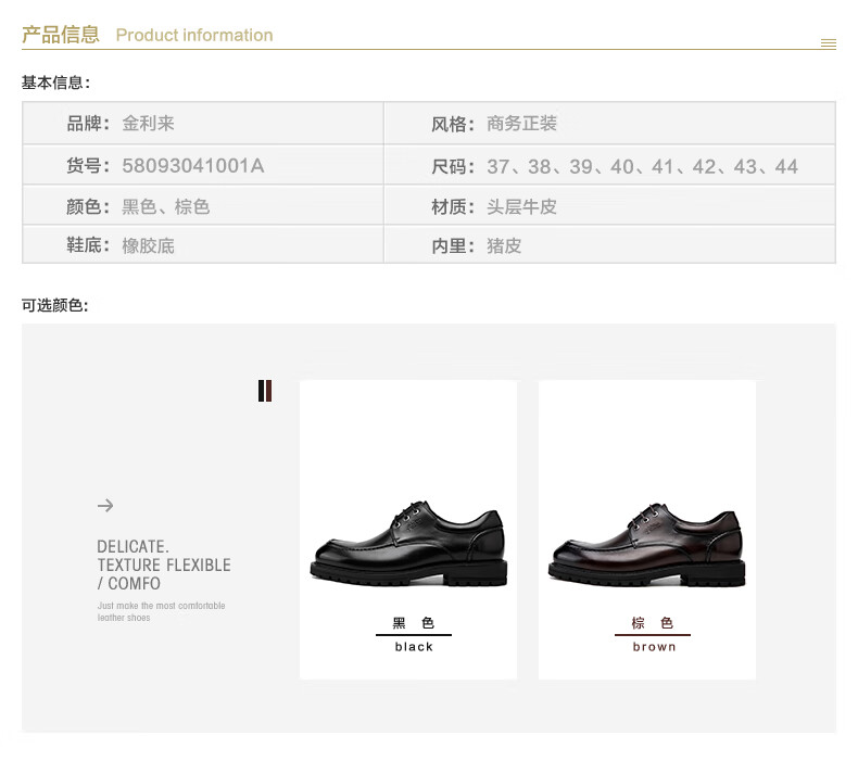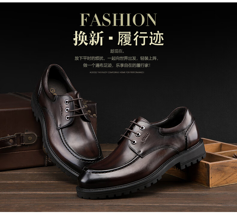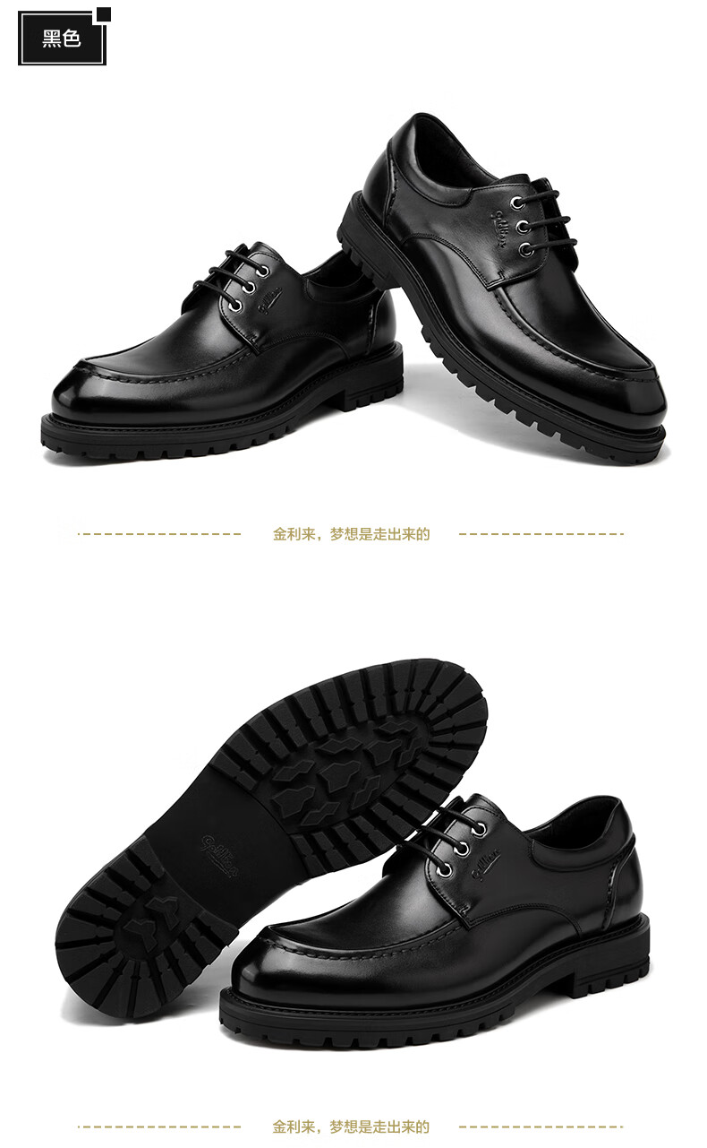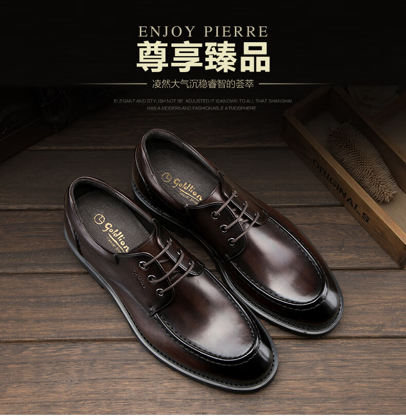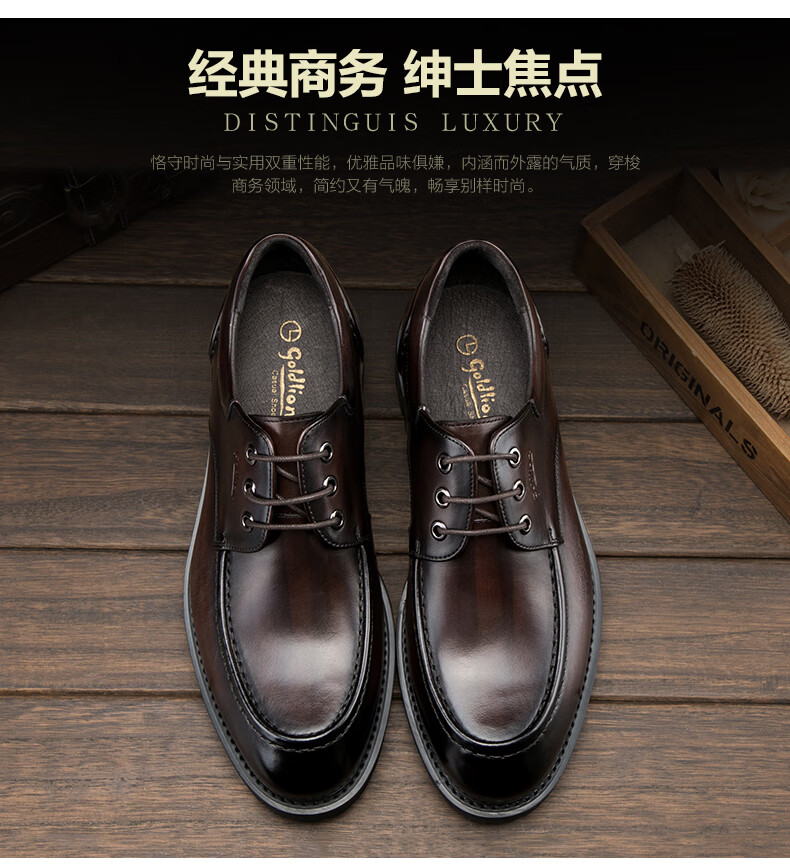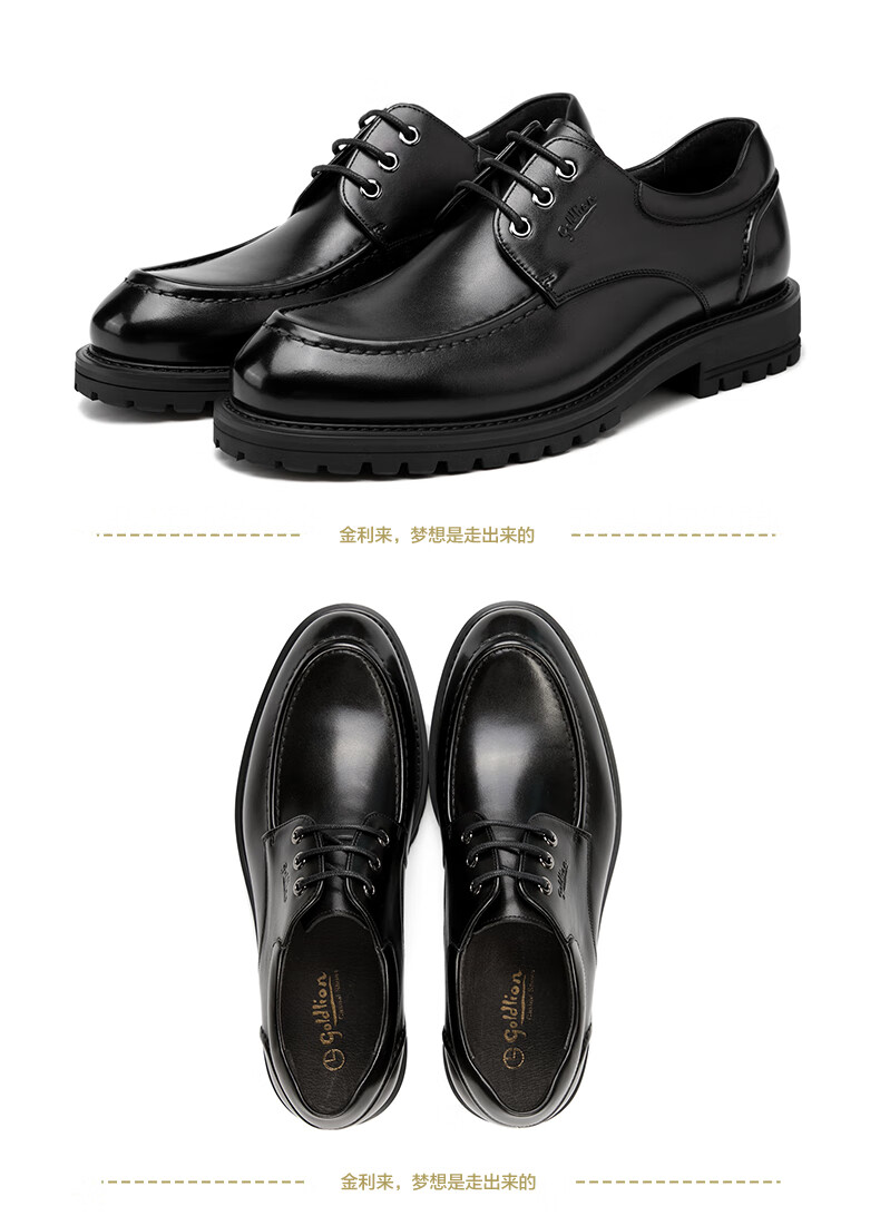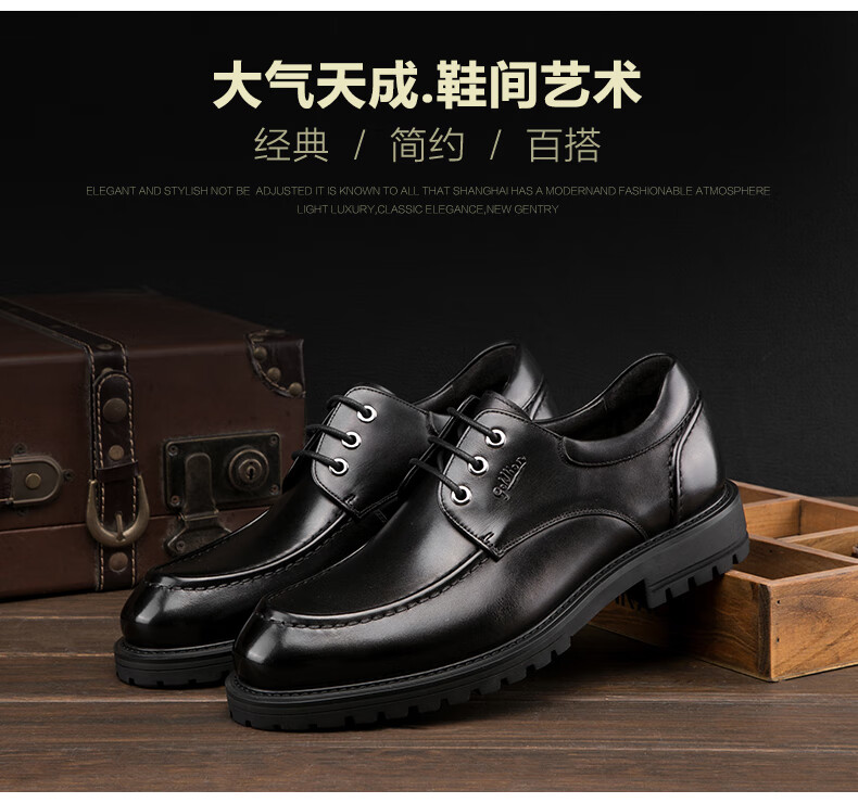 Goldlion men's shoes winter new men's thick-soled formal leather shoes men's round-toe business casual shoes plus velvet warm cotton shoes men's trendy brown lace 58093041040A 41