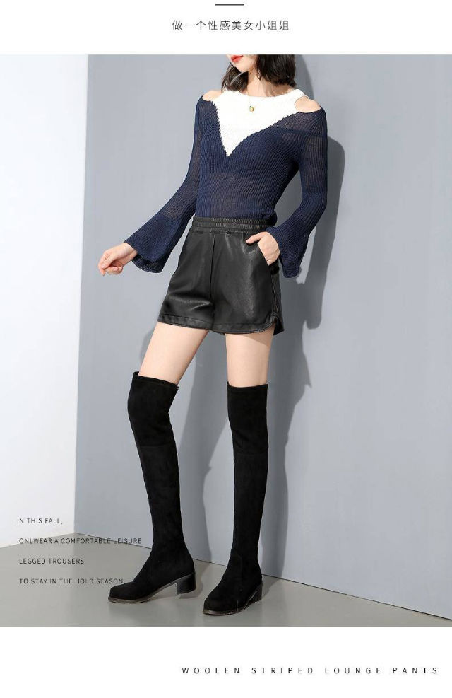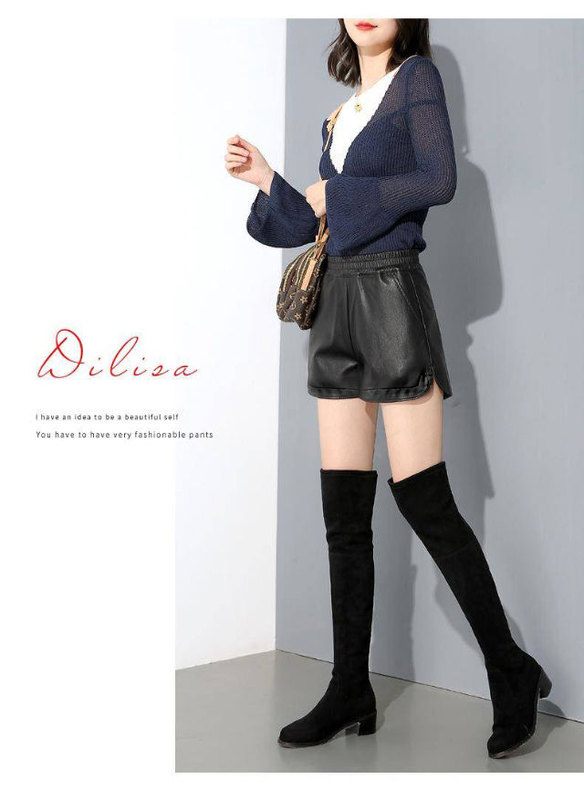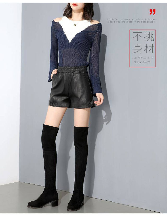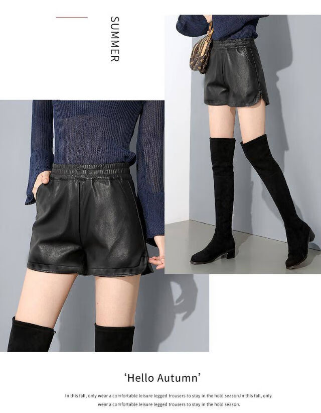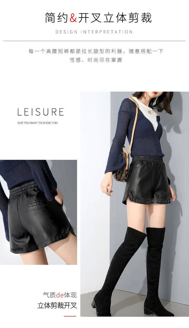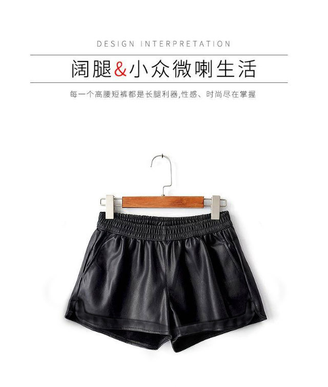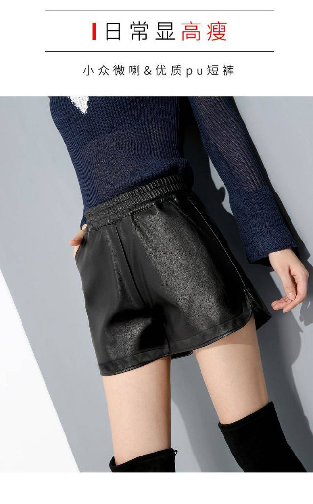 PU leather pants for women 2019 new short a-line autumn and winter pants thin high-waisted loose wide-leg leather shorts for outer wear black M (suitable for 95-110 Jin Jin equals 0.5 kg)