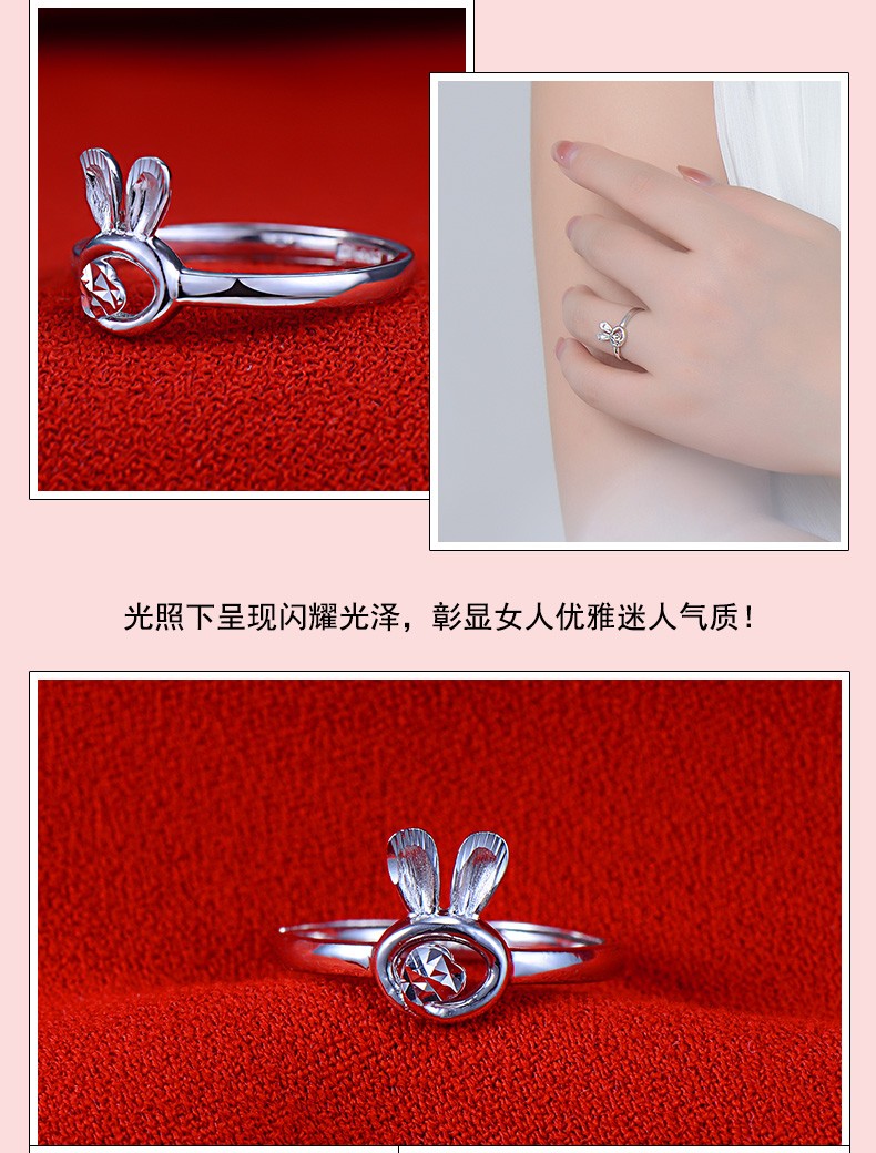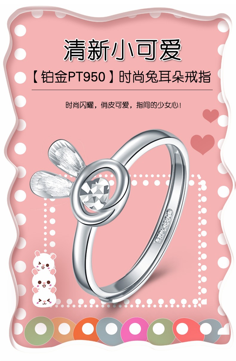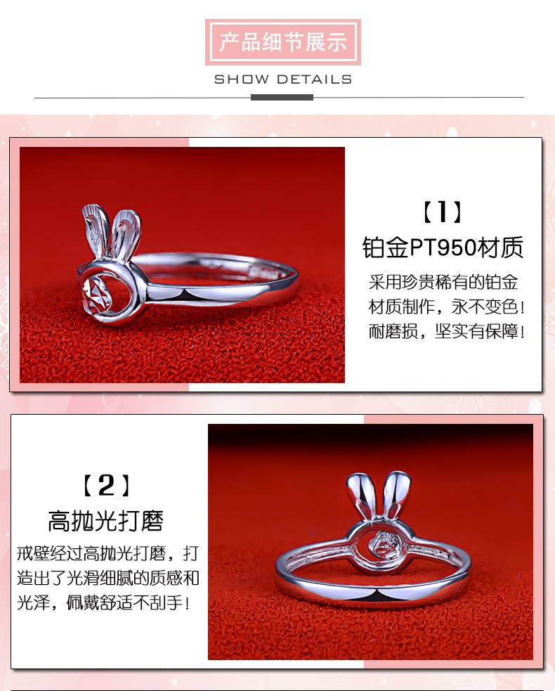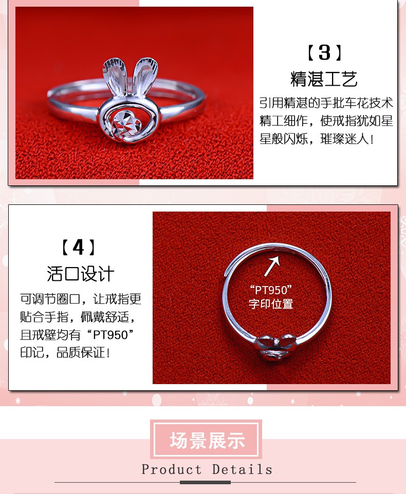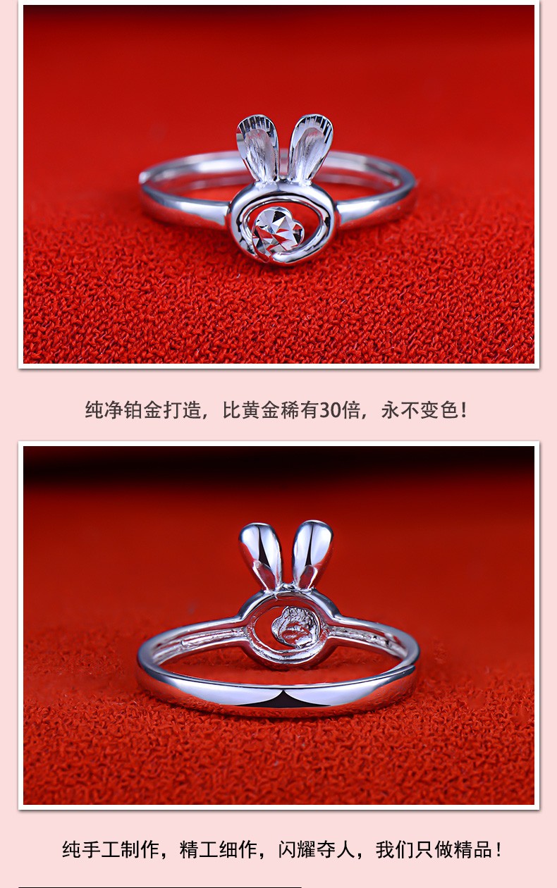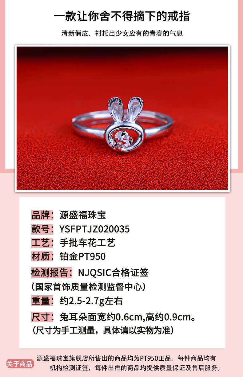 Yuan Shengfu's new fashionable platinum PT950 ring, women's versatile rabbit ear platinum ring, adjustable, 2.65 grams, adjustable mouth