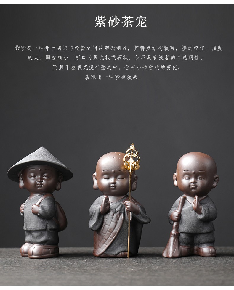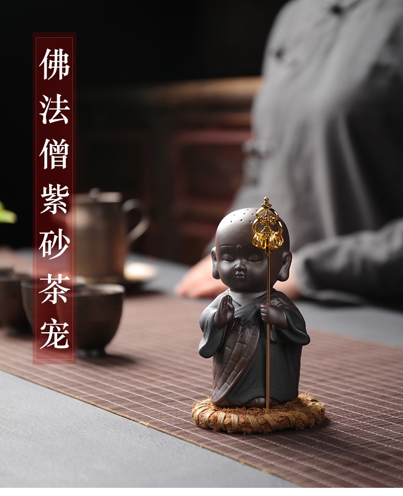 Yuxuan Zen Tea Pet Purple Clay Fine Handmade Ceramics Little Monk Can Cultivate Tea Art Tea Ceremony Tea Play Tea Tray Ornaments Sweeping Monk