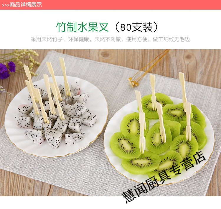 Kahuile disposable fruit fork made of wooden bamboo bamboo skewer fruit skewer for home use creative children's cake fruit skewers 80 pieces per pack