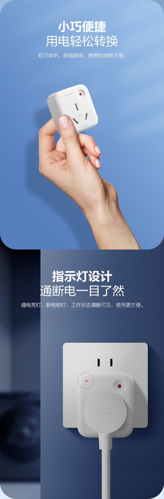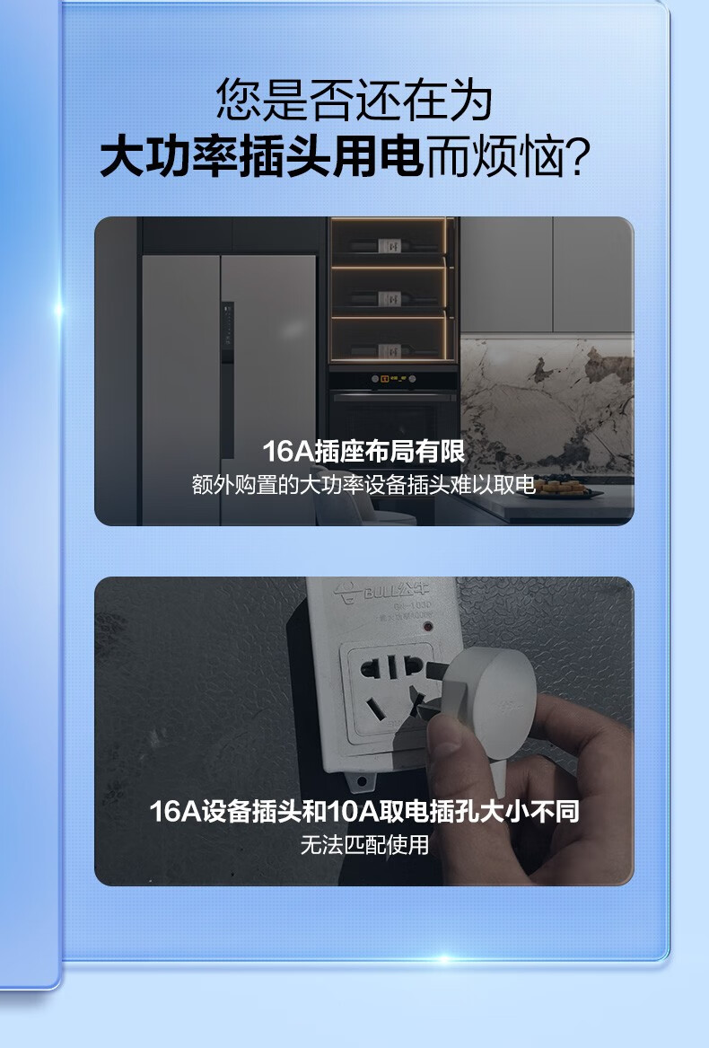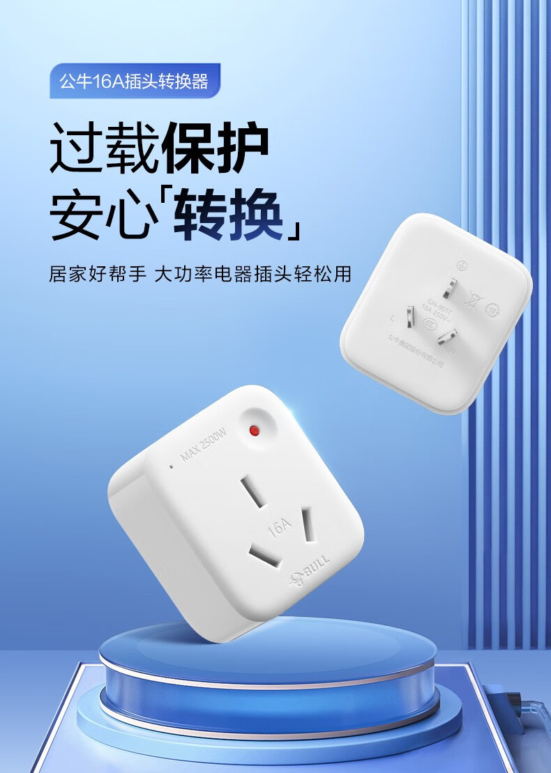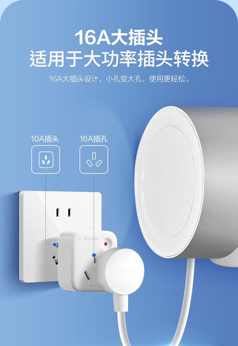 Bull Air Conditioner Special Socket Converter 10A to 16A to 10a High Power Insert Row One to Two with Switch Large Hole Panel Water Heater Wireless Expansion Plug One to Two GN-9323D 16A to 16A+10A
