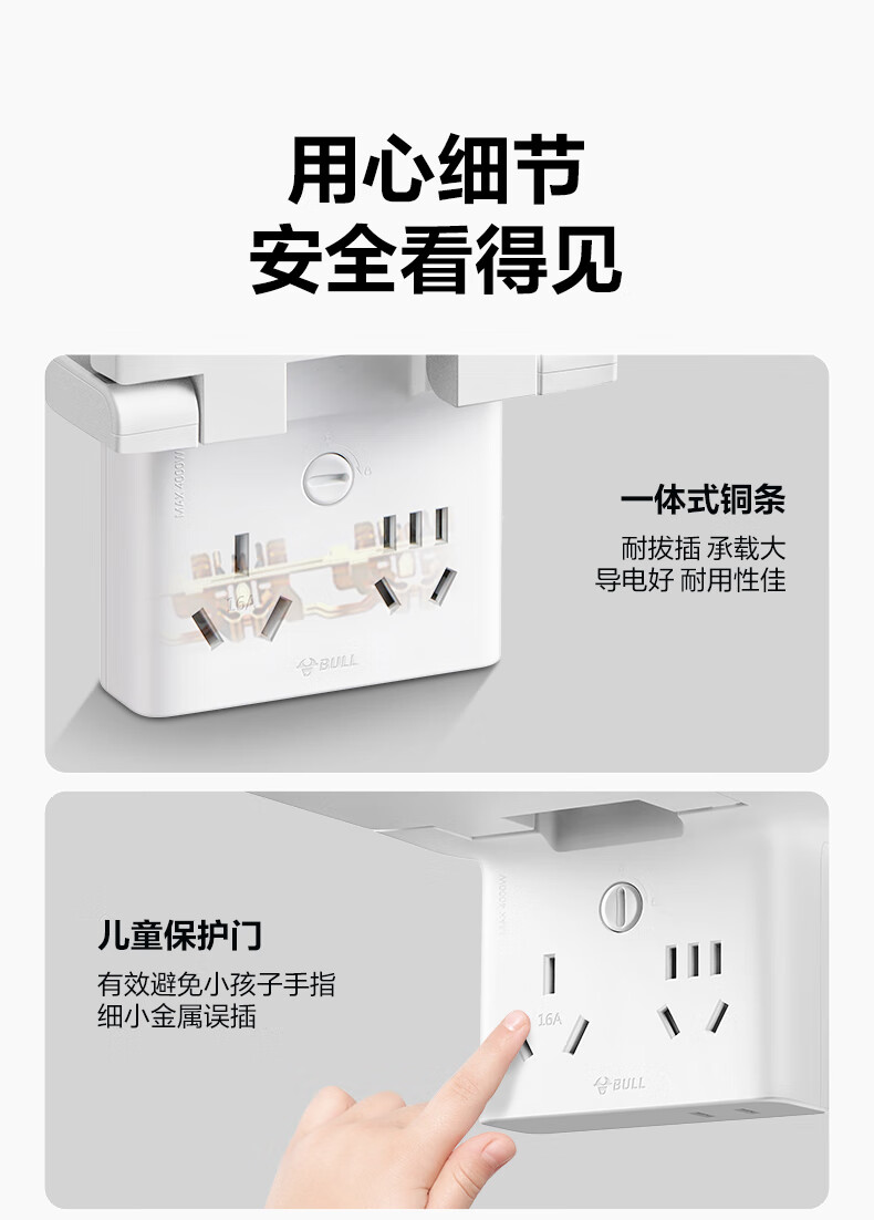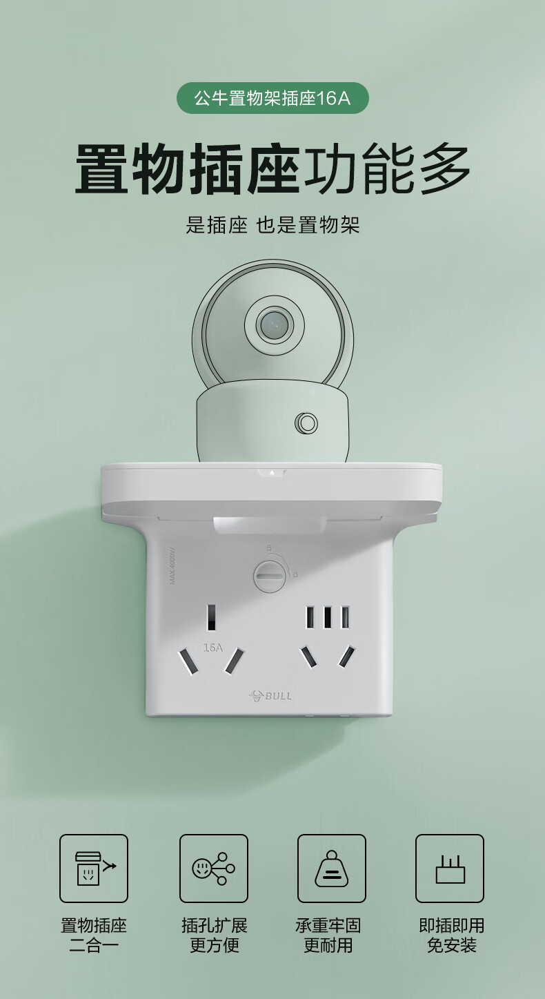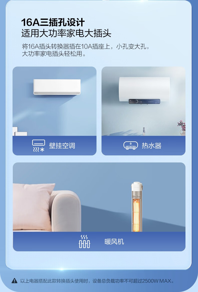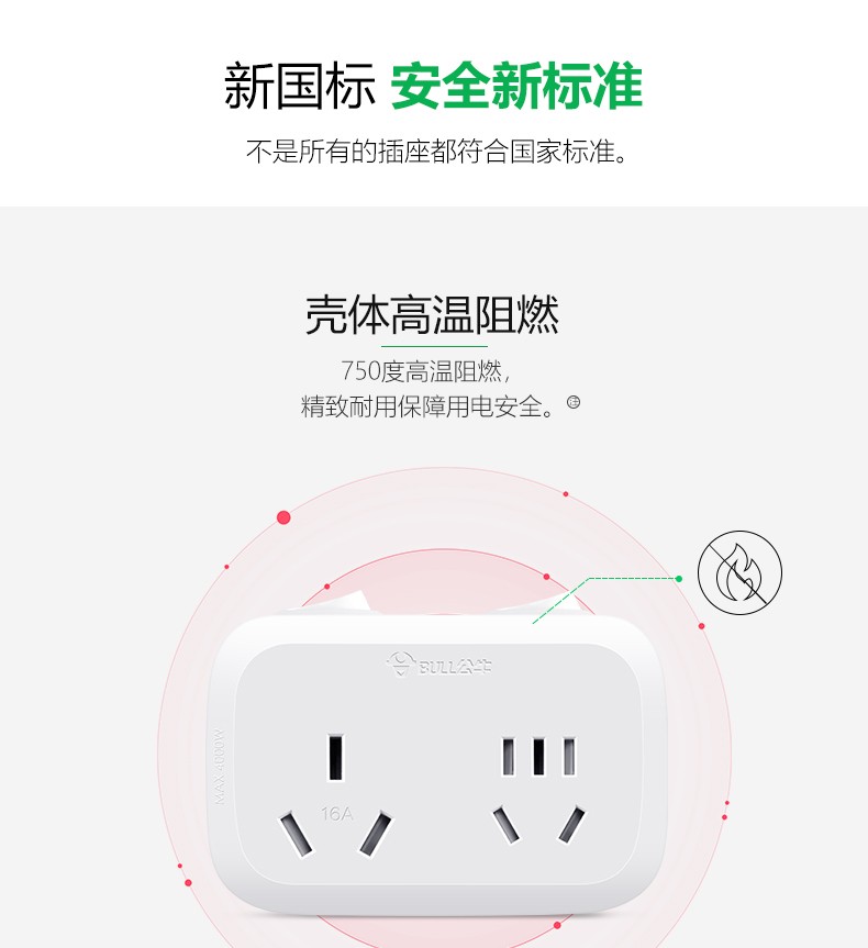 Bull Air Conditioner Special Socket Converter 10A to 16A to 10a High Power Insert Row One to Two with Switch Large Hole Panel Water Heater Wireless Expansion Plug One to Two GN-9323D 16A to 16A+10A