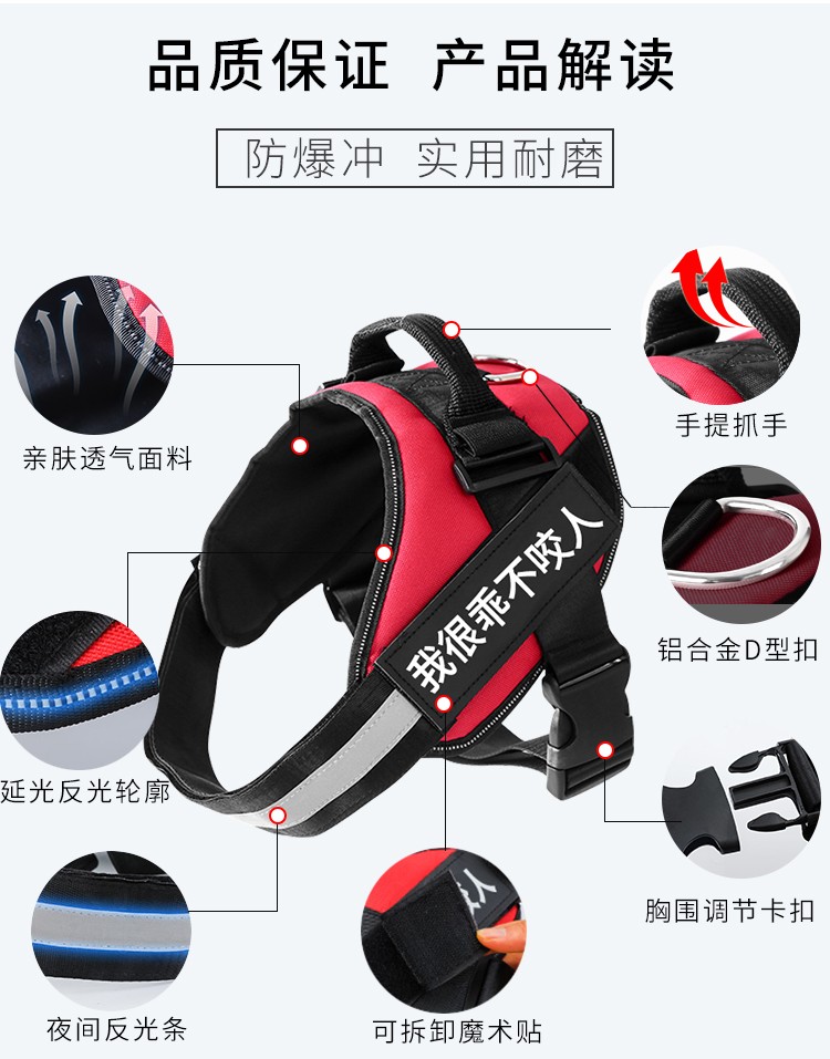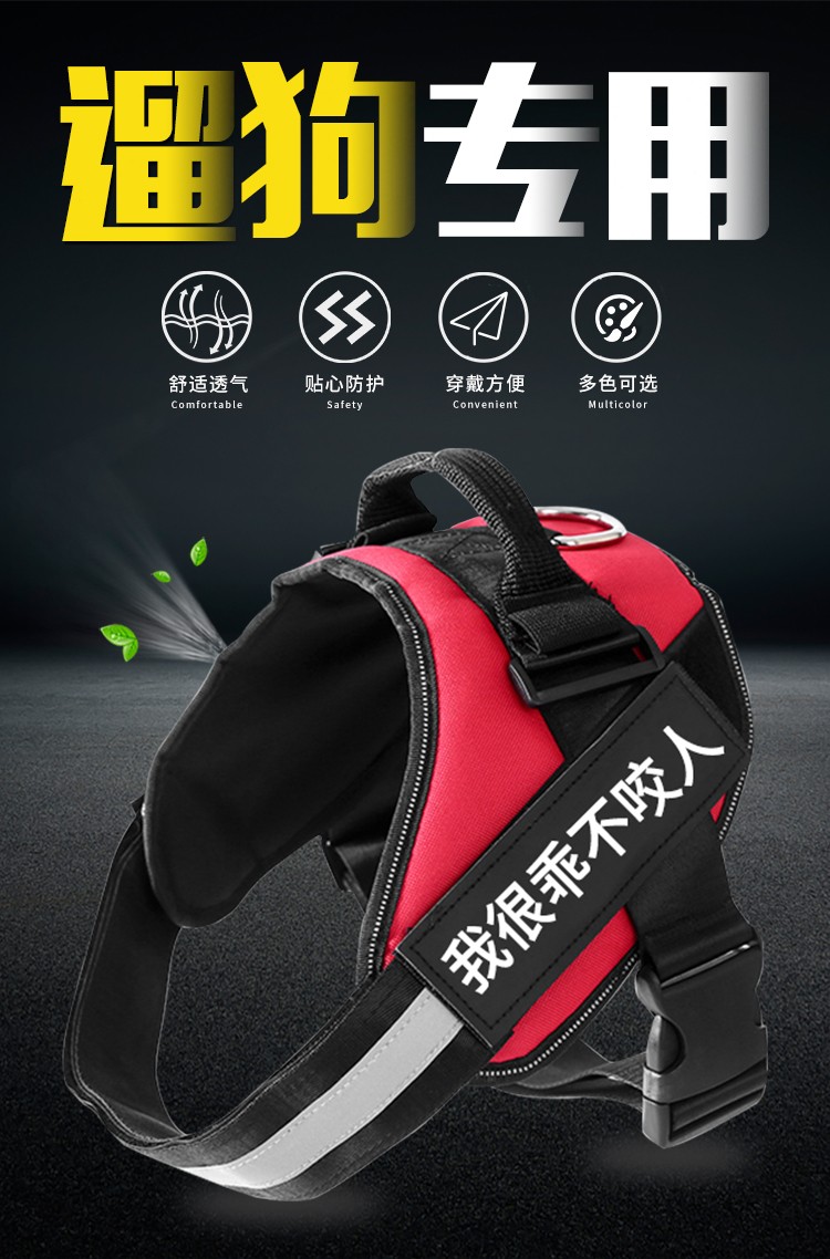 Hanhan pet dog leash, dog leash, dog leash, medium and large dog Labrador golden retriever explosion-proof harness, outdoor supplies, red L size recommended 40-60 Jin Jin equals within 0.5 kg