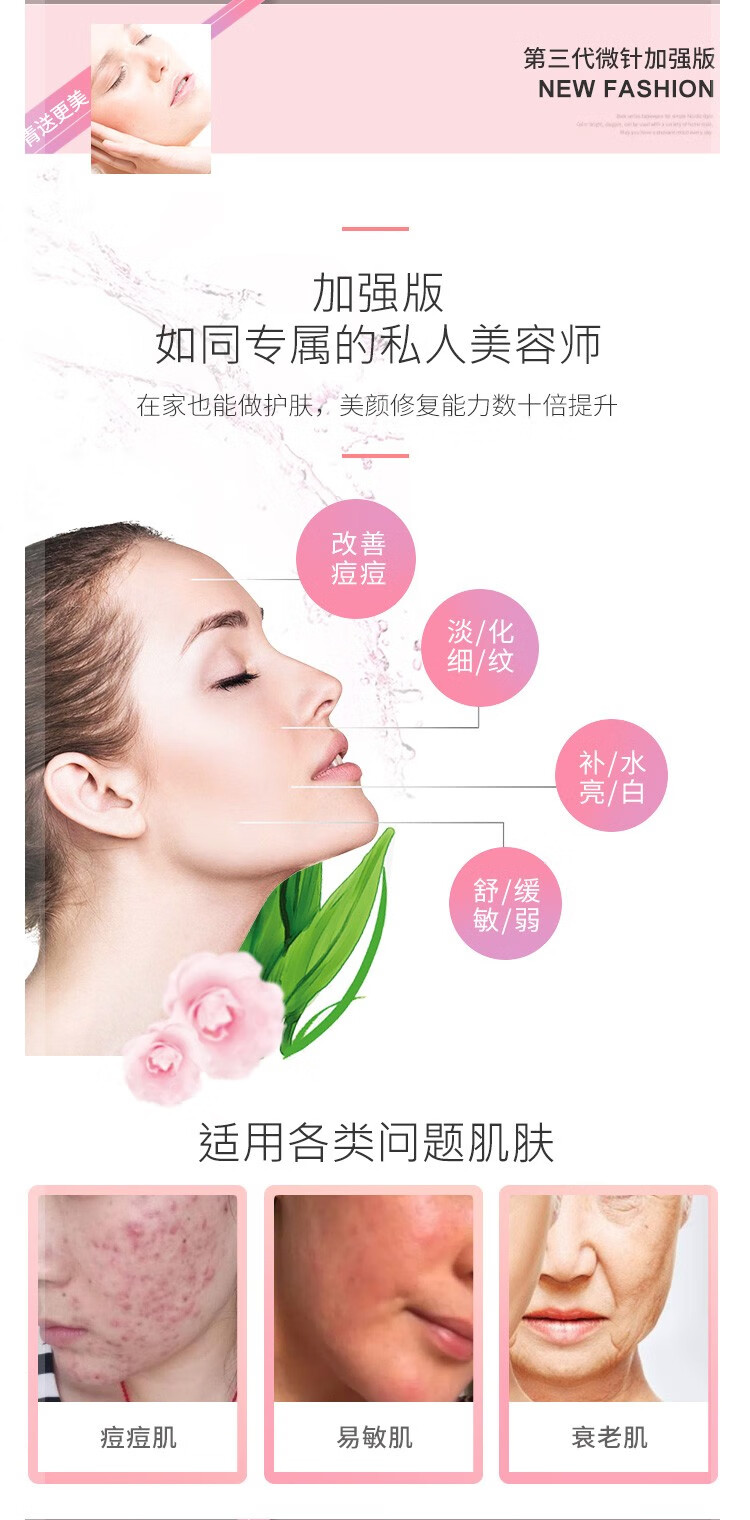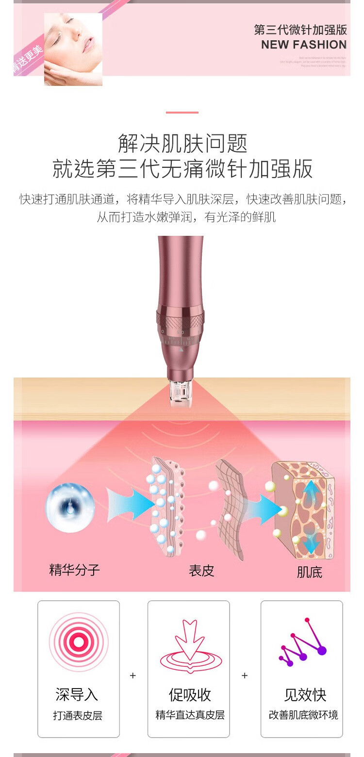 YISUER nano electric microneedle introduction instrument microcrystal household mts mesoblast essence original solution repair and remove acne marks and pits pink + 2 heads default round crystal other remarks 1 piece