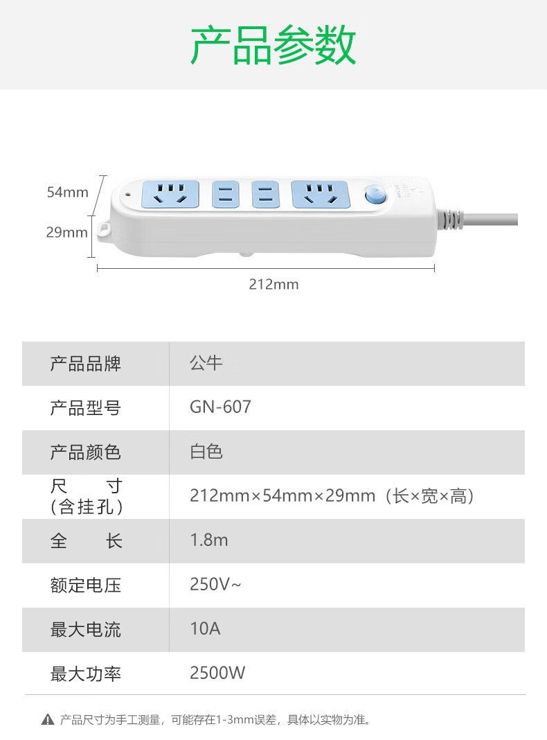 Bull single row socket with switch 1.8 meters 4 sockets 4 holes GN-607 new national standard straight socket/plug board/plug strip/row plug/terminal board/pull line board/electric plug board 1.8 meters GN-607
