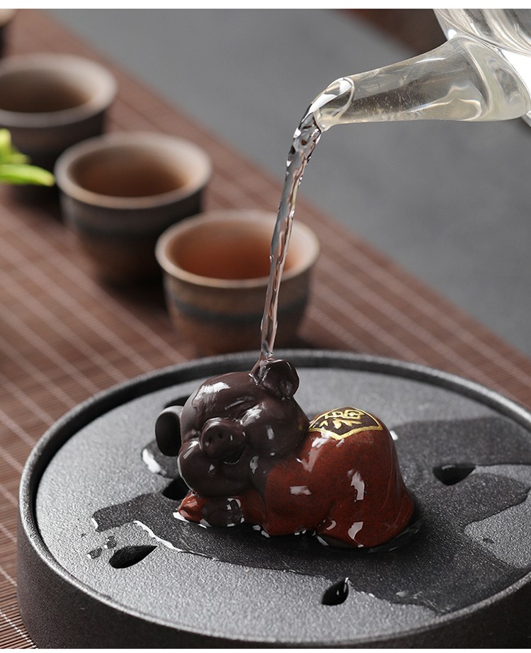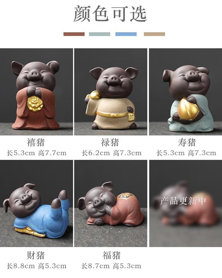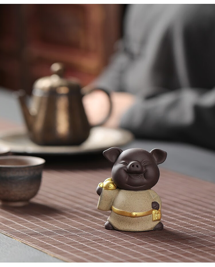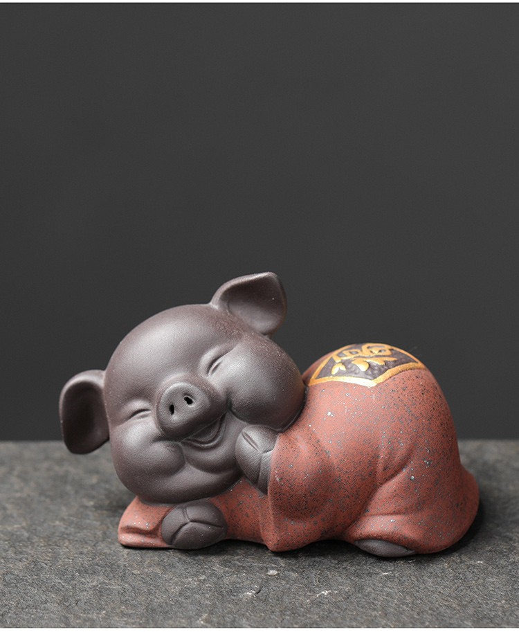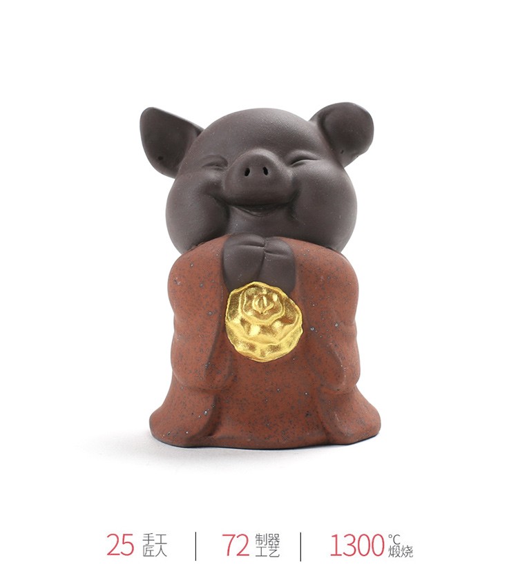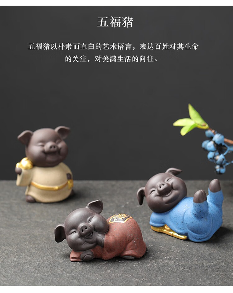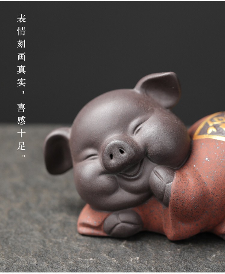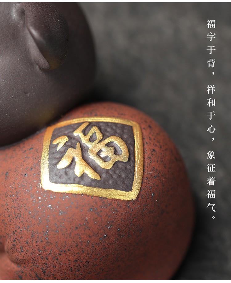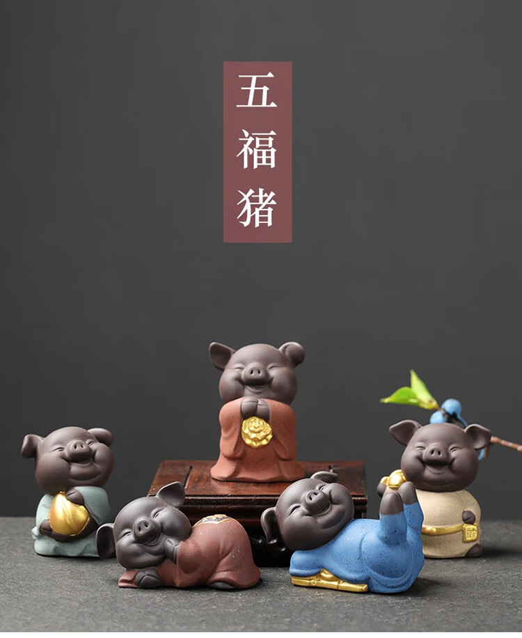 Yuxuan purple sand tea pet creative five blessing pig ornaments handmade tea art mini gold painted tea toy tea set accessories five blessing pigs