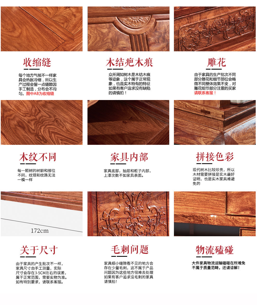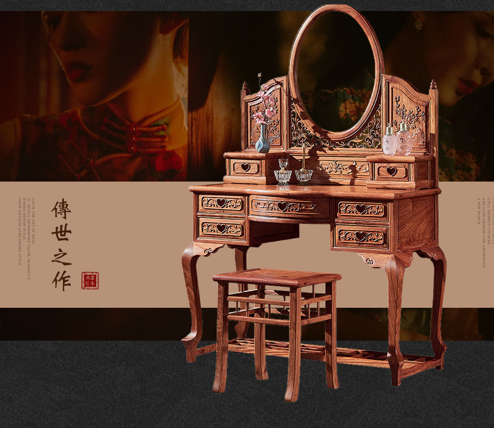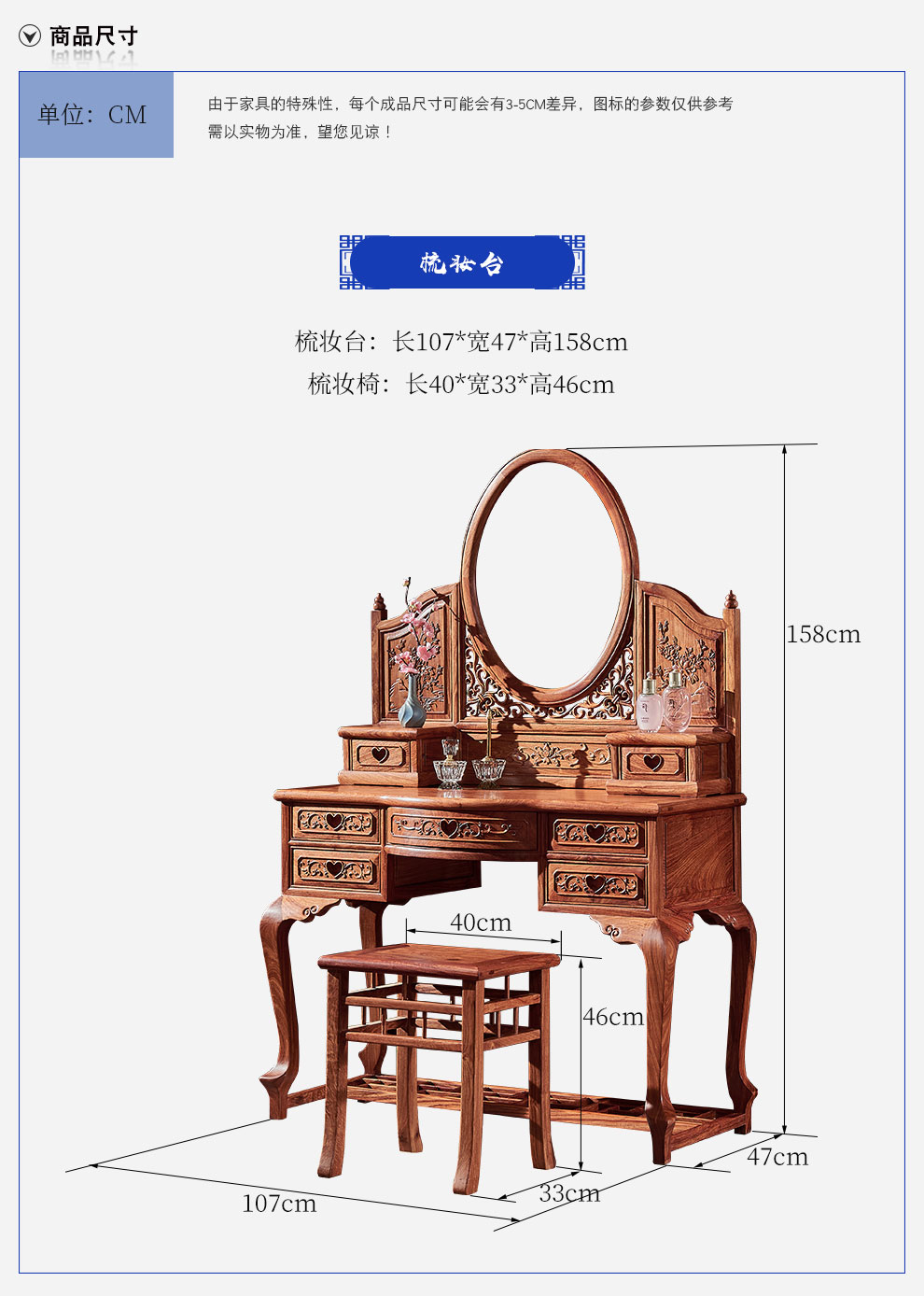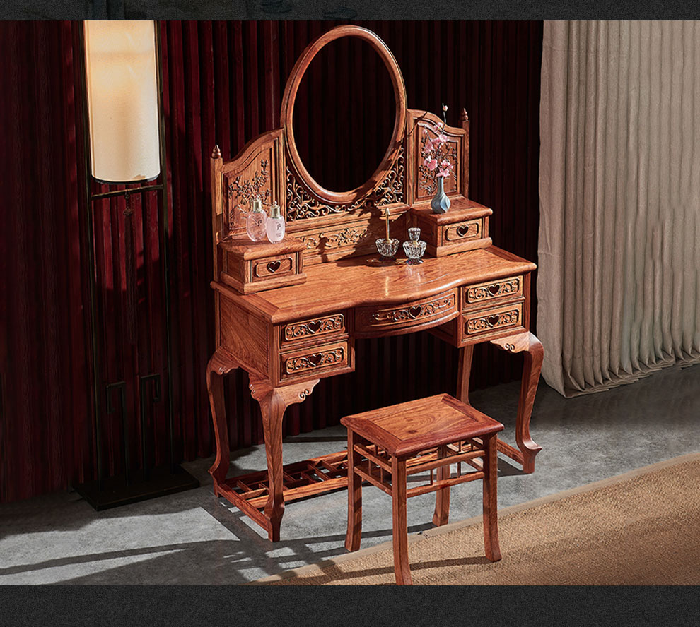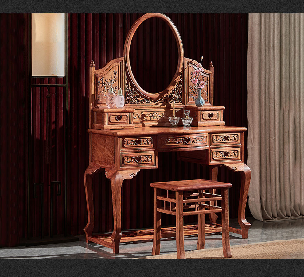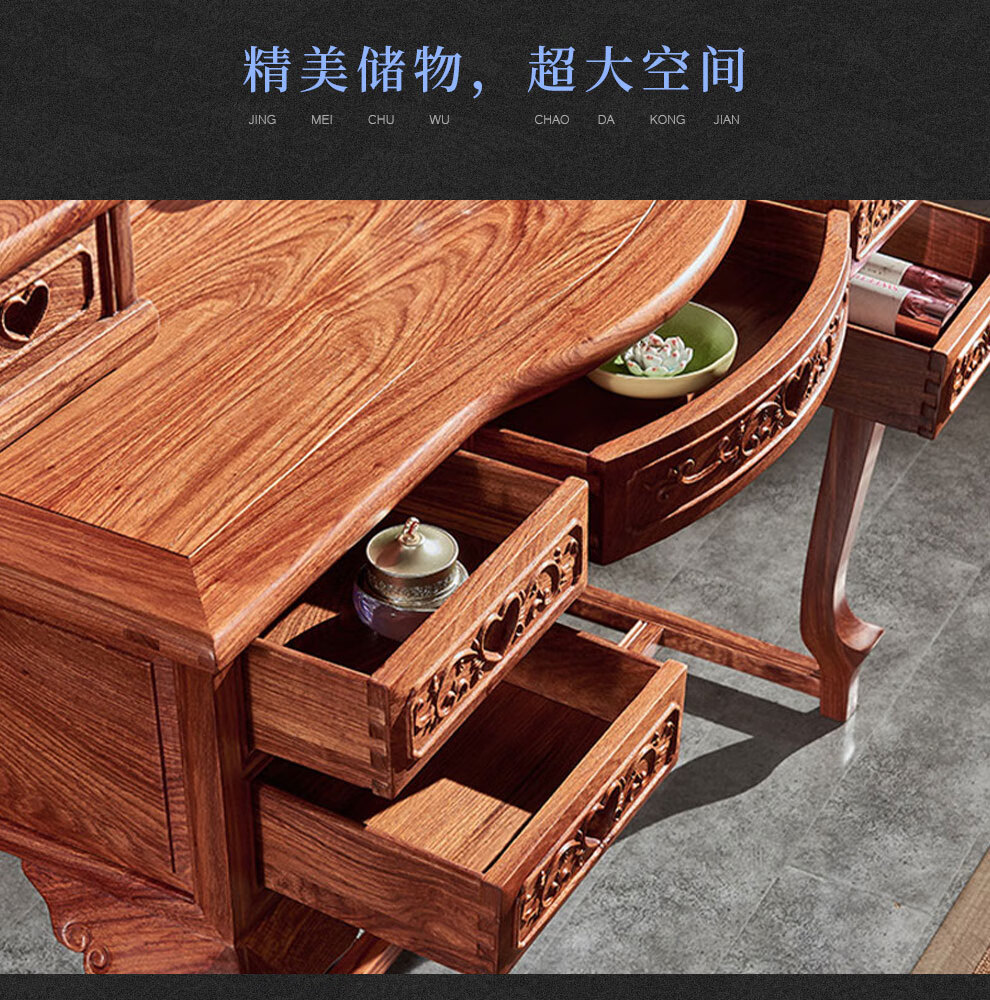 Zhidao mahogany furniture African rosewood (scientific name: Hedgehog rosewood) solid wood dressing table dressing table new Chinese bedroom furniture dressing table and stool combination dressing table + stool