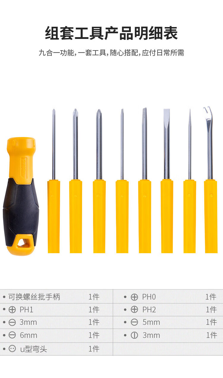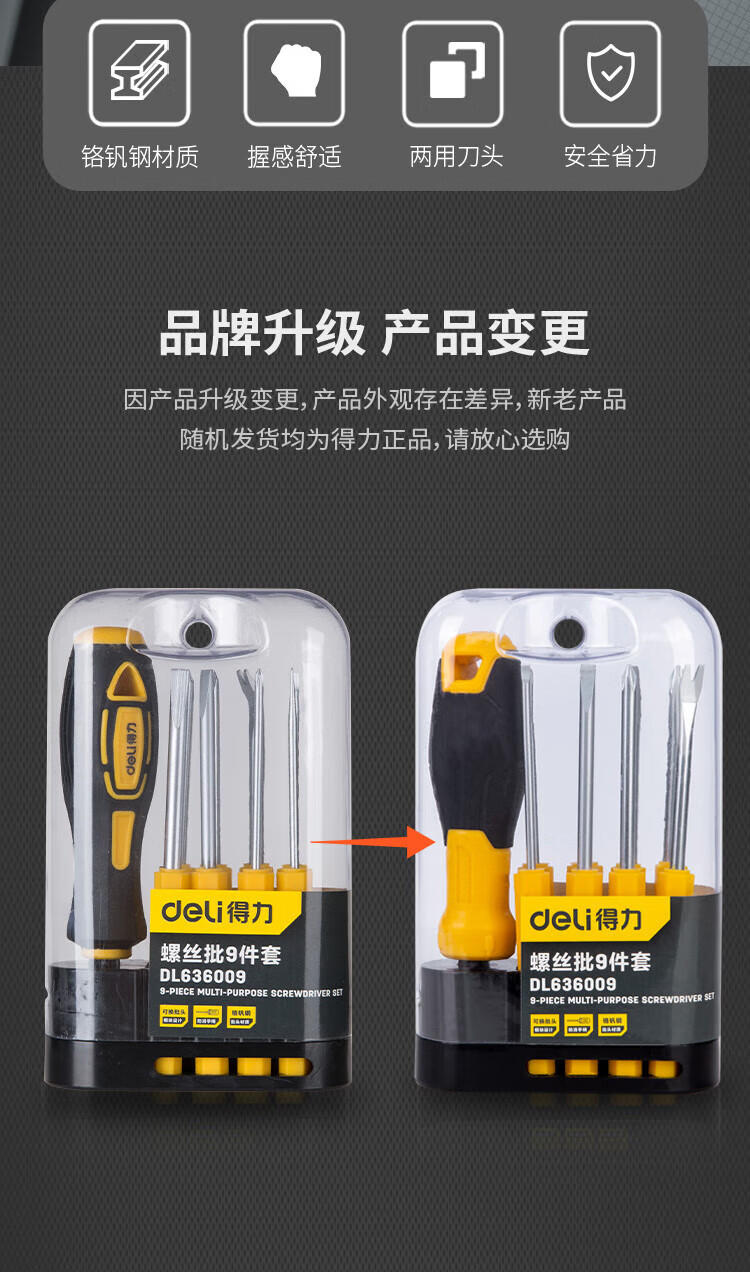 Deli multi-purpose screwdriver chrome vanadium steel screwdriver driver set 9-piece set DL636009