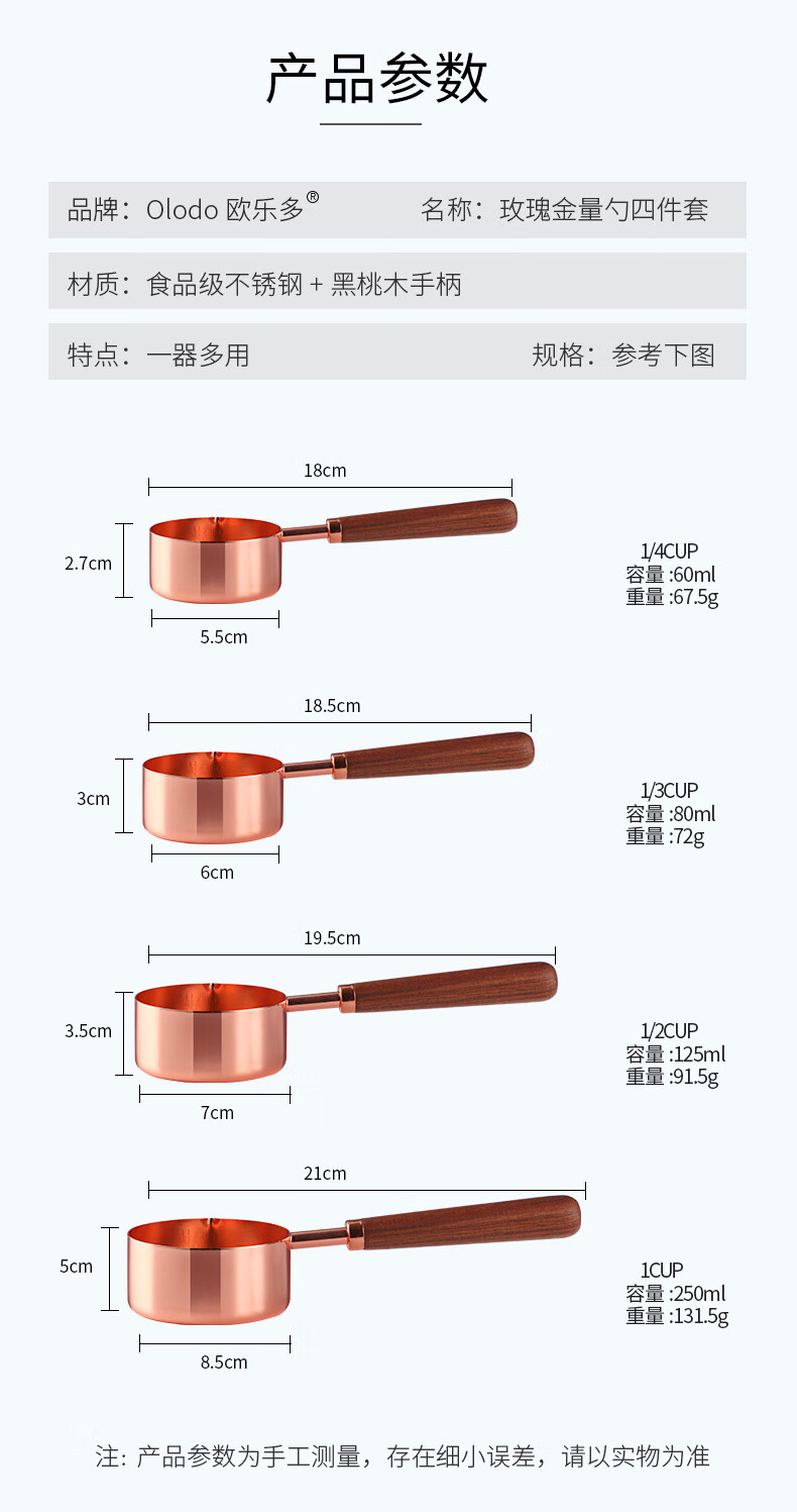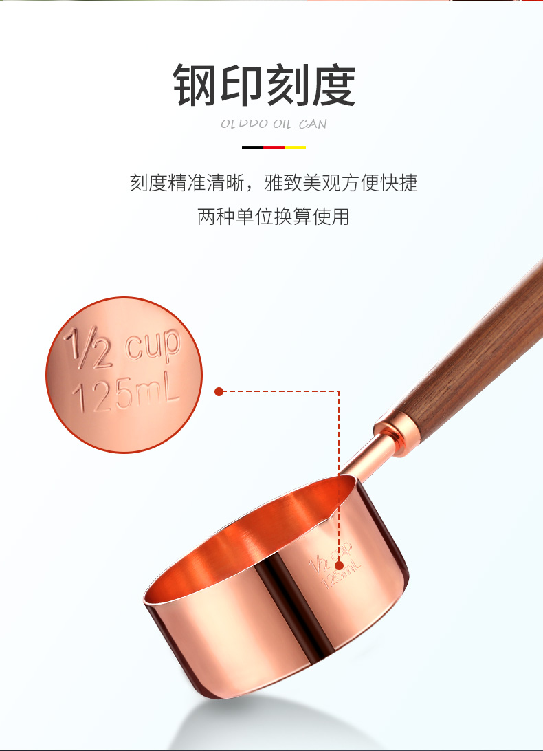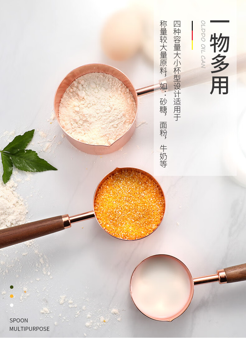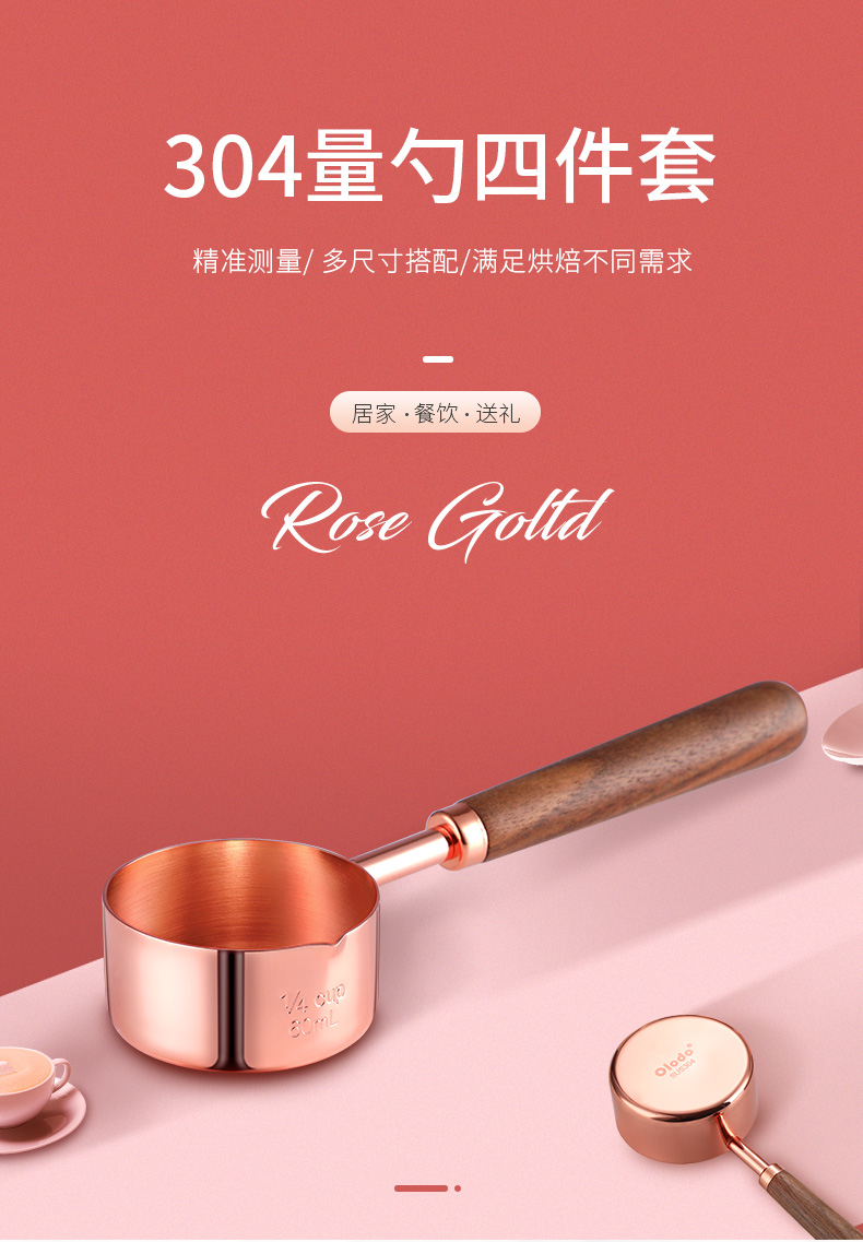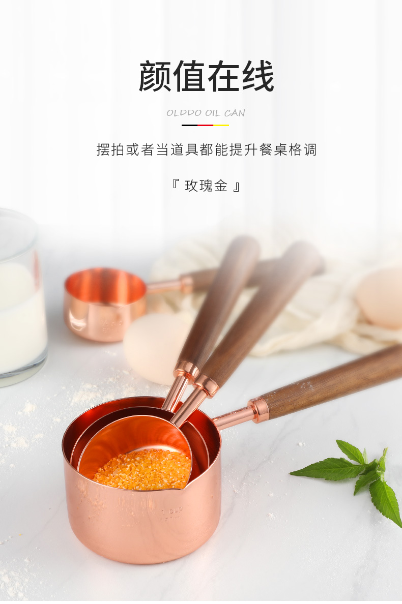 Oraldo 304 stainless steel measuring spoon long handle protein powder coffee measuring spoon large capacity spoon measuring rice spoon baking measuring spoon rose gold measuring spoon four-piece set