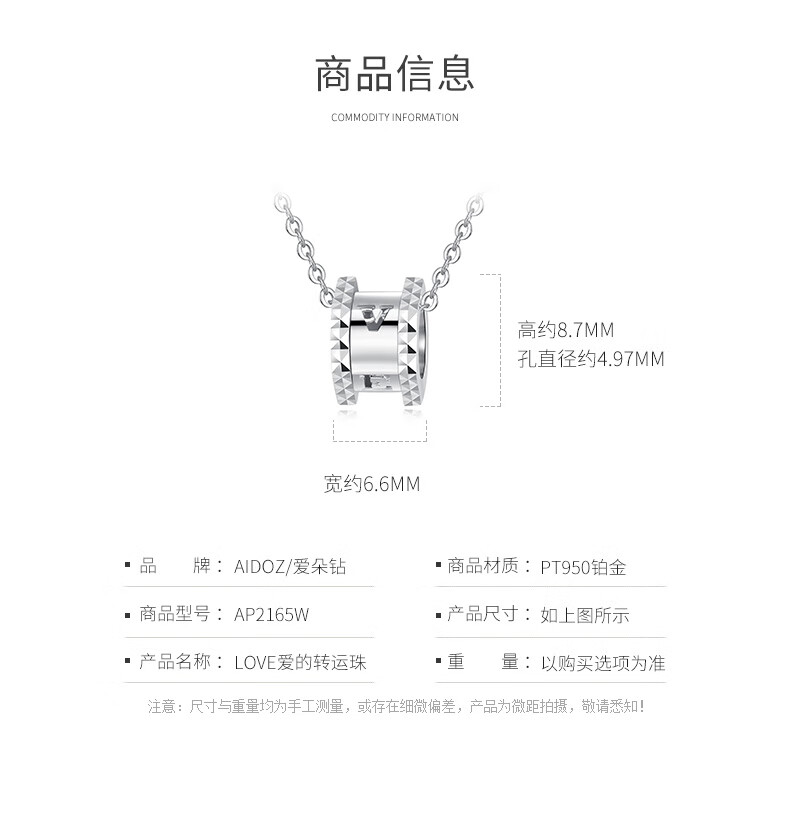 Aido Diamond PT950 Platinum Small Waist Necklace Platinum Transfer Bead Set Chain for Girlfriend Weight 4.3-4.5 Grams + Delivery Certificate