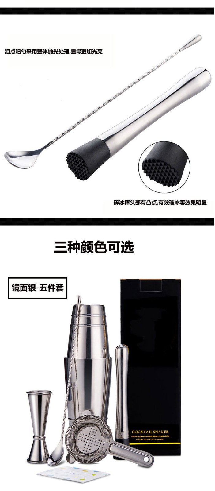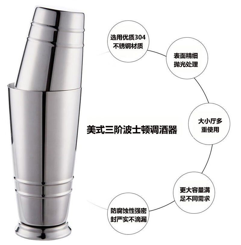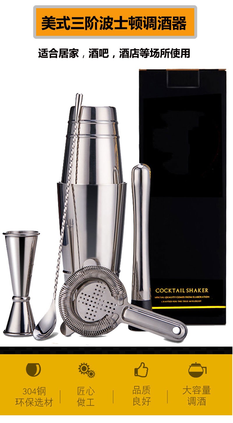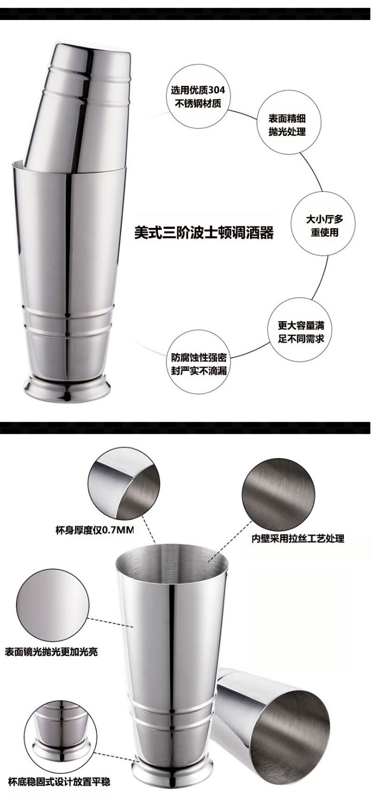 Fernas 304 stainless steel American three-stage Boston shaker, cocktail shaker, cocktail shaker set, three-stage mirror-5-piece set