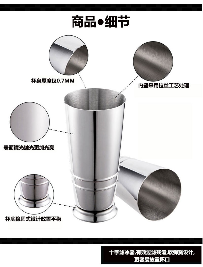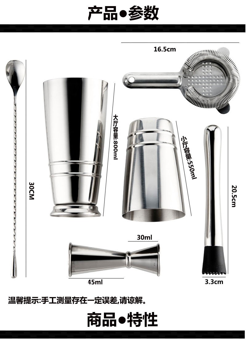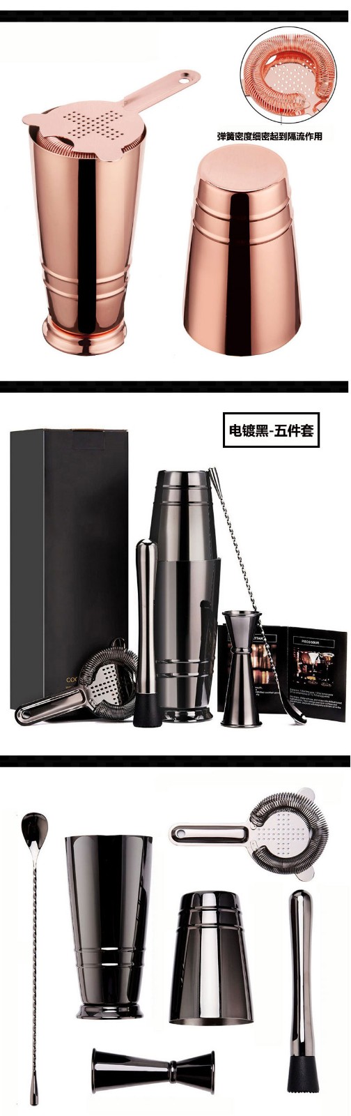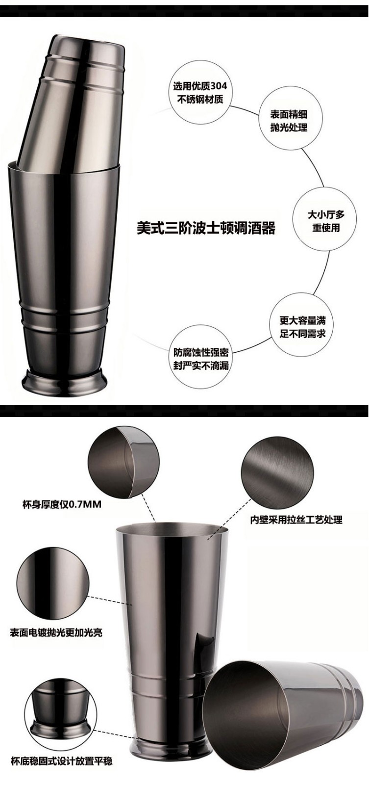 Fernas 304 stainless steel American three-stage Boston shaker, cocktail shaker, cocktail shaker set, three-stage mirror-5-piece set