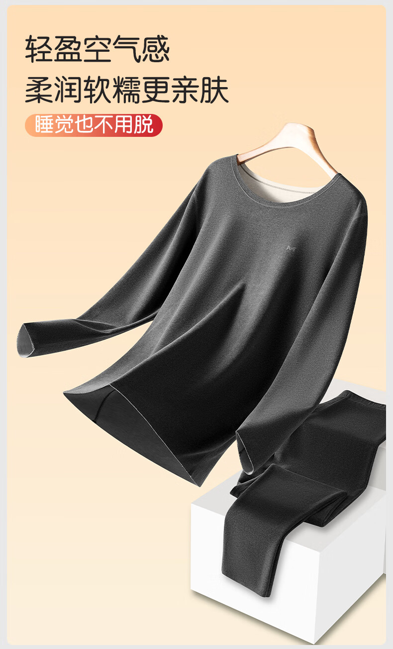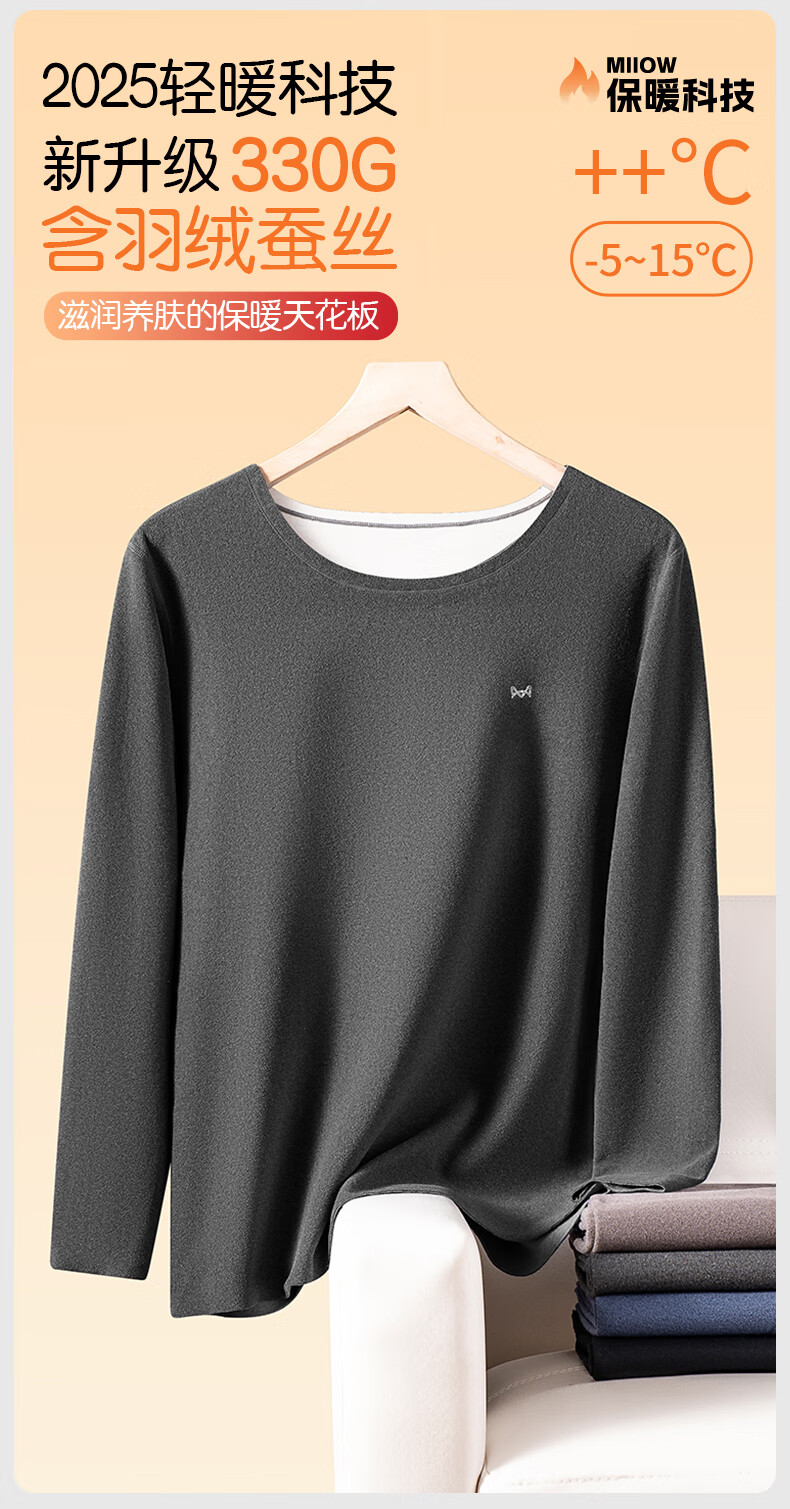 MiiOW Men's Thermal Underwear Men's Down Silk 5A Antibacterial Seamless Winter Couple's Thickened Autumn Clothes and Autumn Pants Set Dark Heather Gray - Men Upgraded 330g Down Silk XL (Recommended 120-150 Jin Jin equals 0.5 kg)