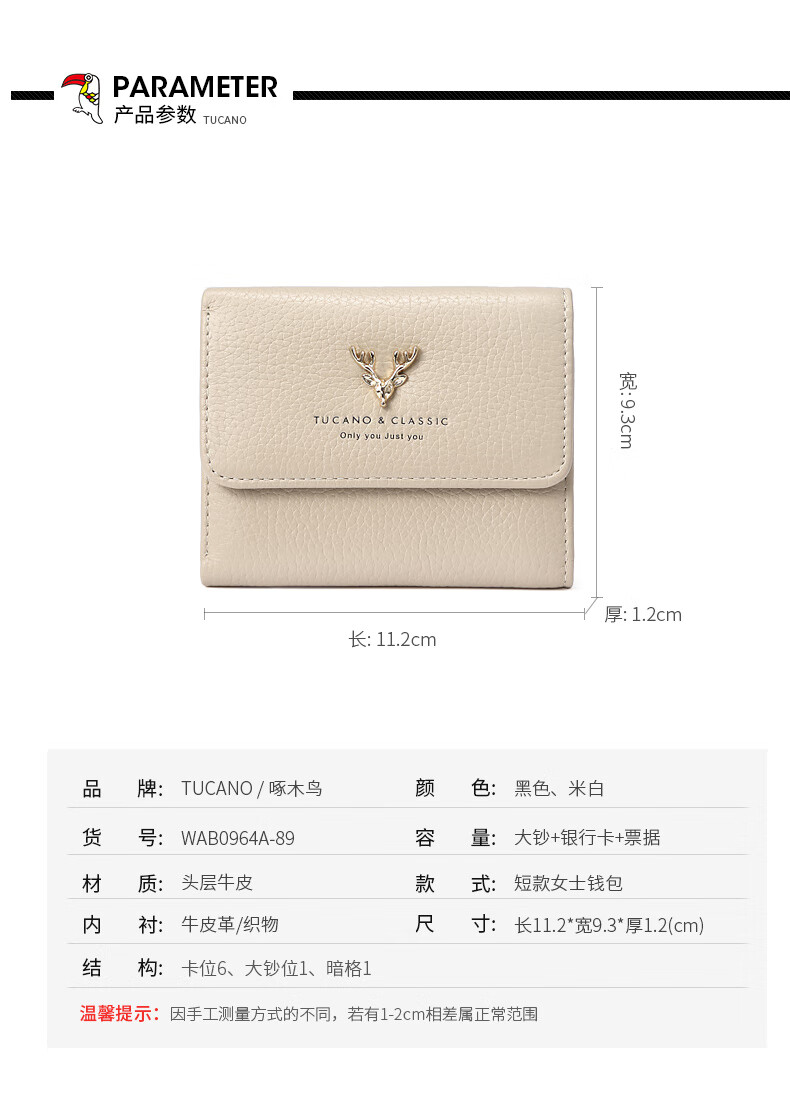 Woodpecker (TUCANO) women's wallet short 30% off sweet lady first-layer cowhide thin wallet practical birthday gift for girlfriend