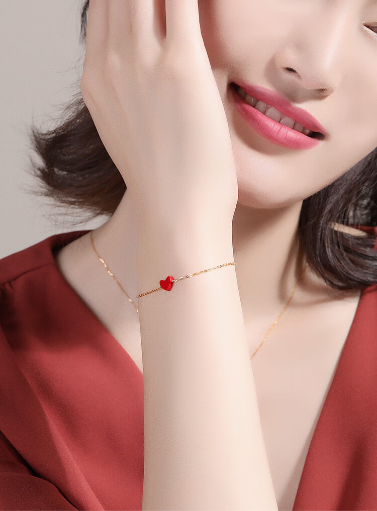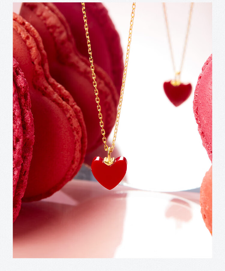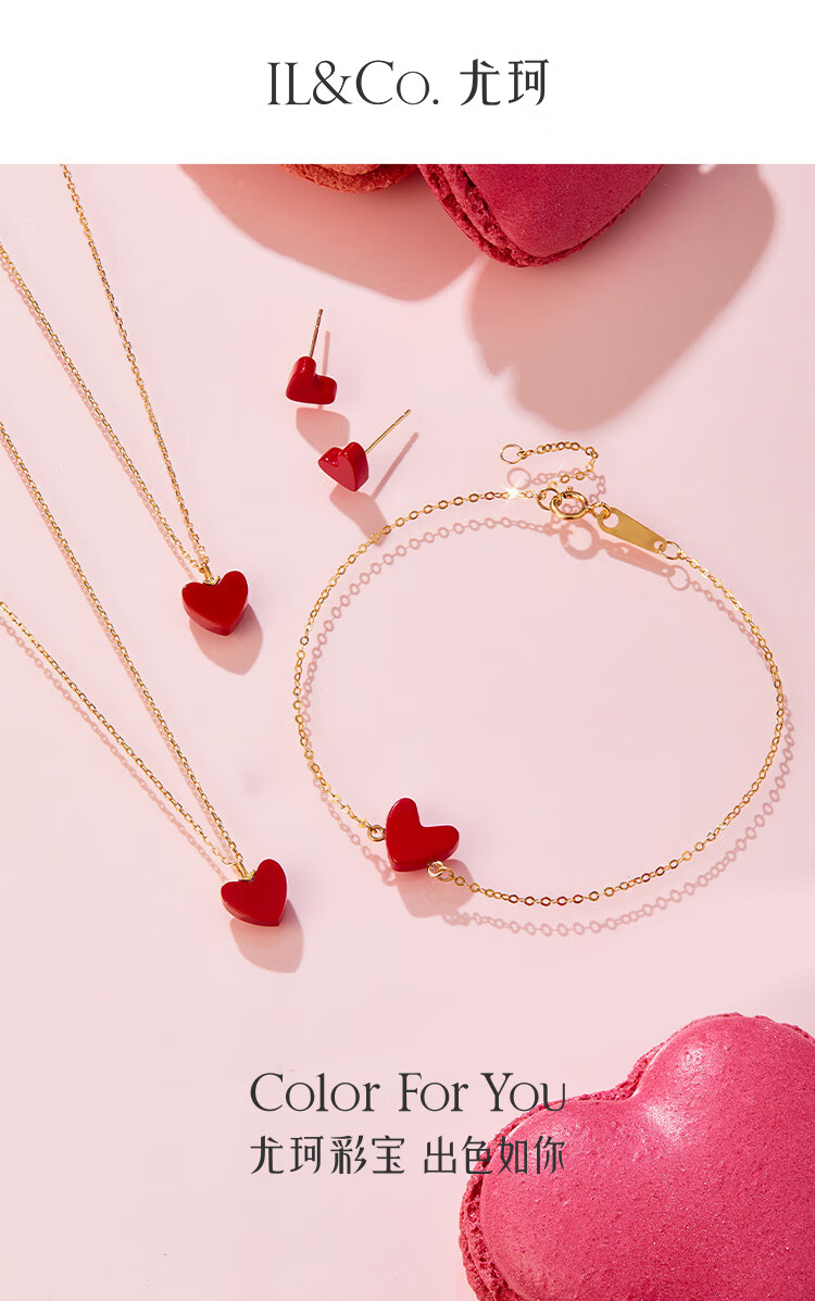 IL&CO Youke 18K gold small red heart necklace women's love set clavicle chain for girlfriend's birthday and Valentine's Day gift small red heart necklace
