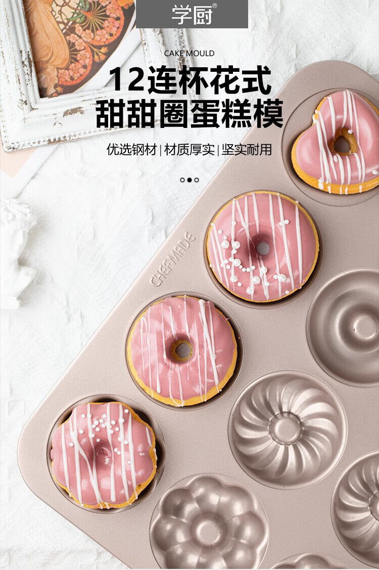 Xuechu Cake Mold, 12-Connect 4-Flower Donut Mold, Butter Rice Cake Mold, Bread Baking Pan Tools