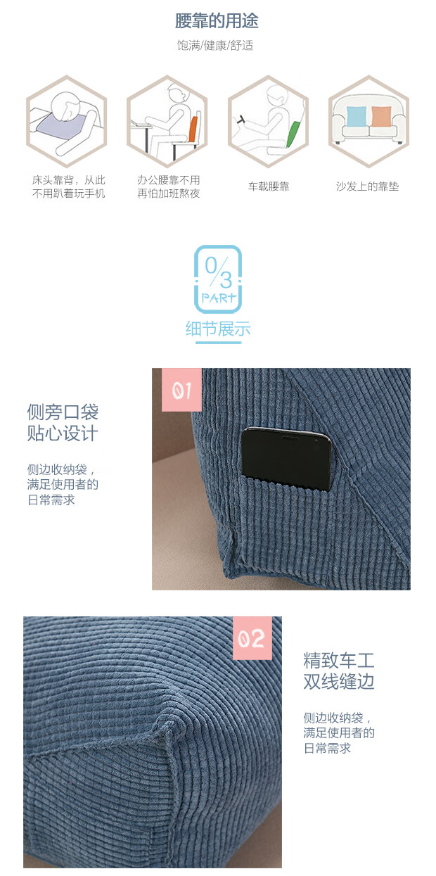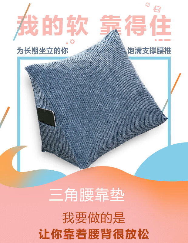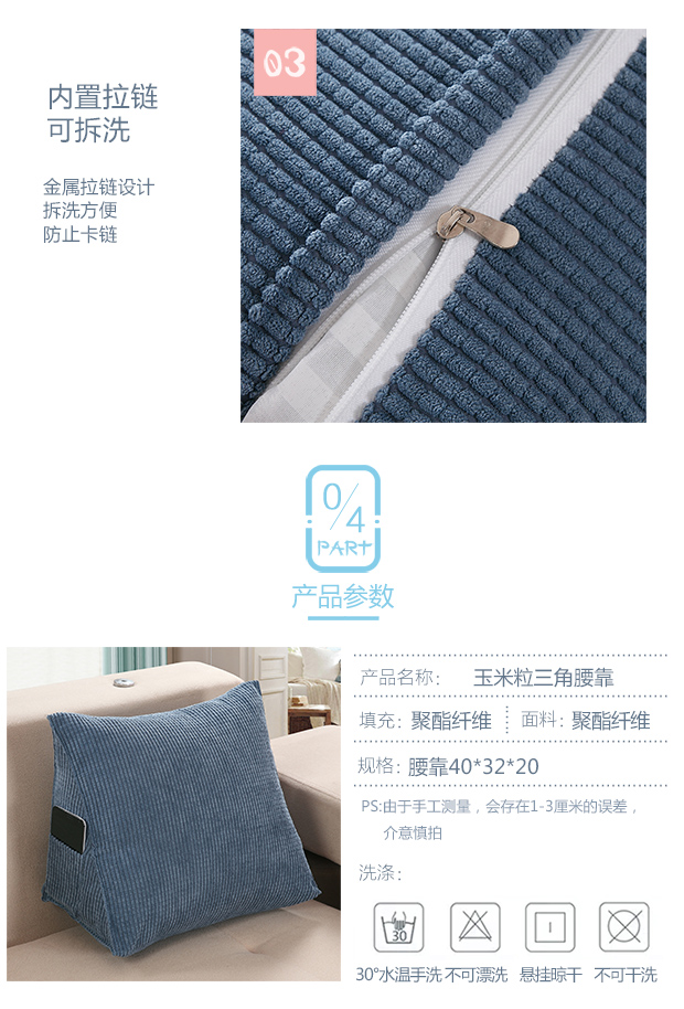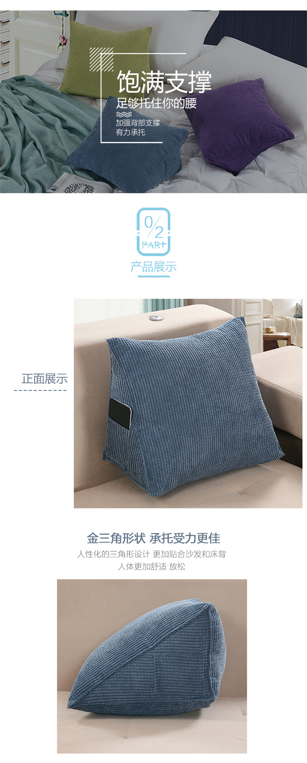 Ivy Cushion Bedside Triangular Cushion Pillow Soft Cover Lumbar Back Cushion Sofa Pillow Waist Pillow Corn Grain Blue