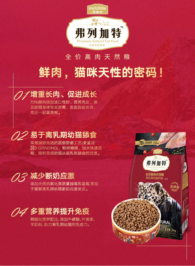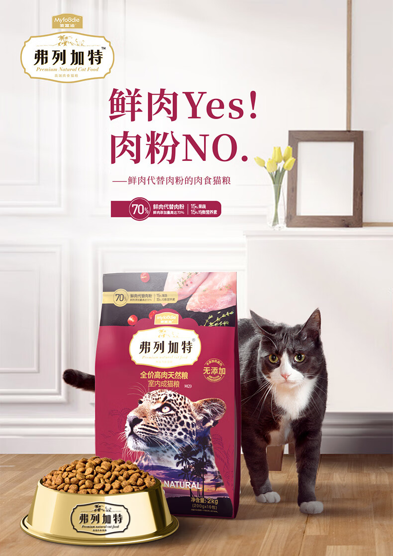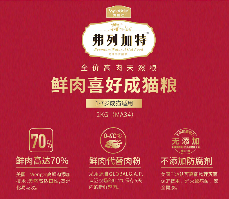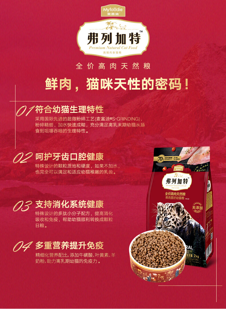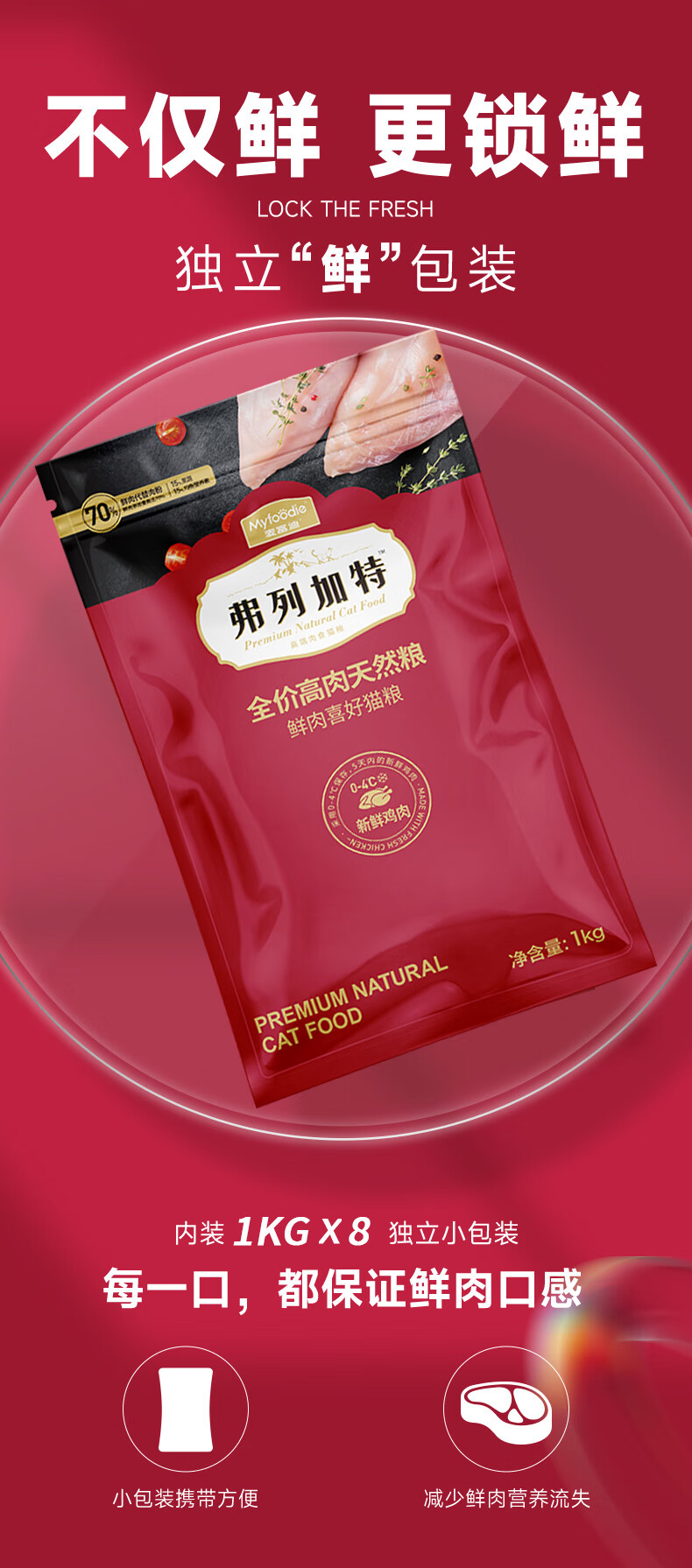 Fleetgate cat food 70% fresh meat cat food for adult cats and kittens 2kg*1 for young cats under 12 months old who like fresh meat