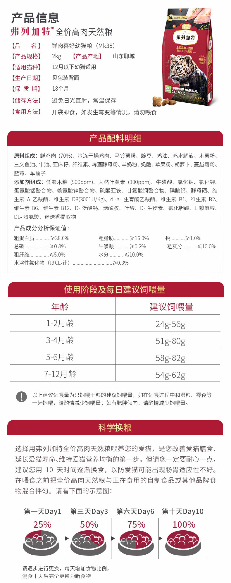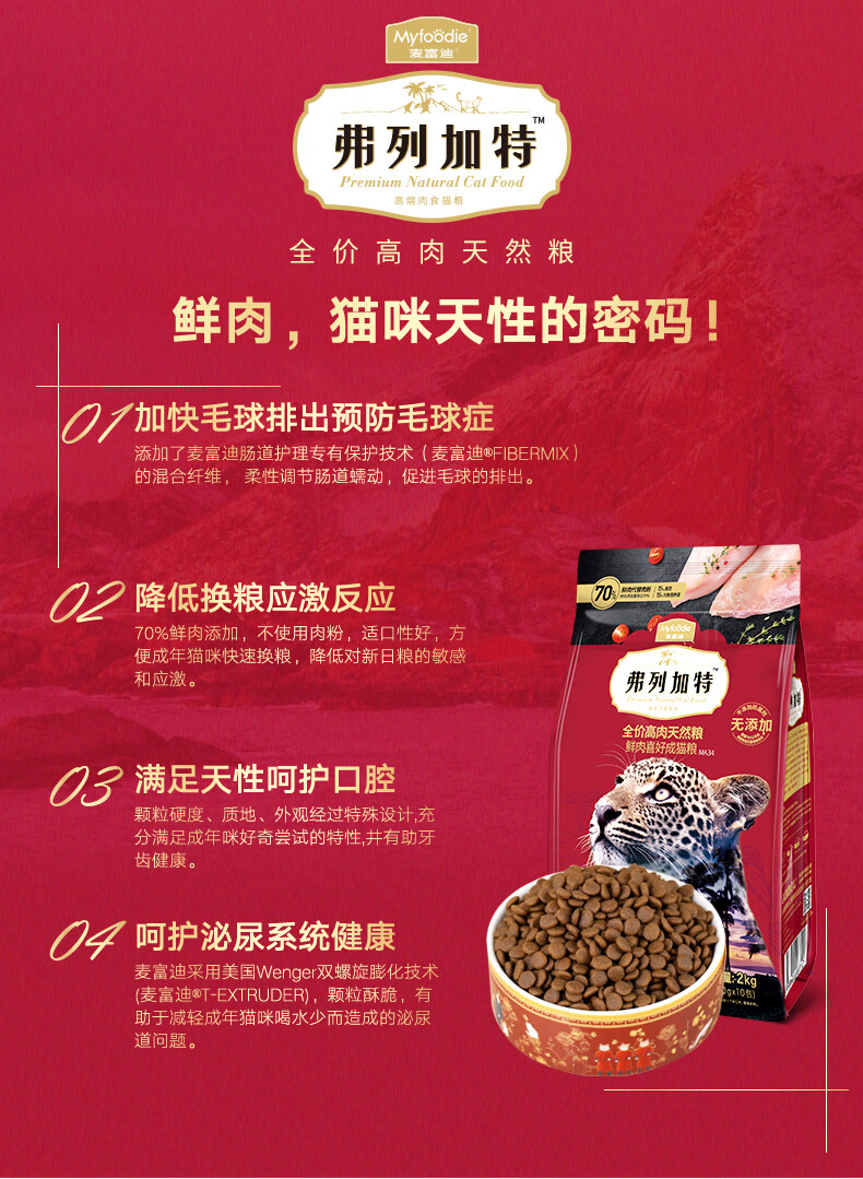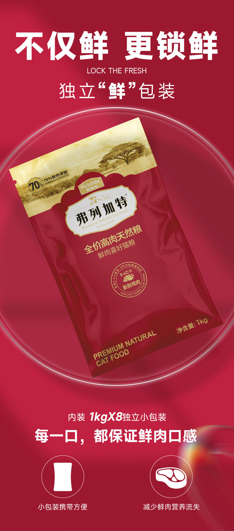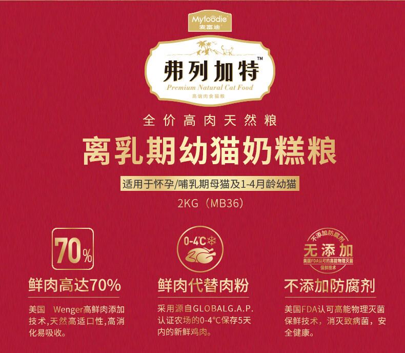 Fleetgate cat food 70% fresh meat cat food for adult cats and kittens 2kg*1 for young cats under 12 months old who like fresh meat