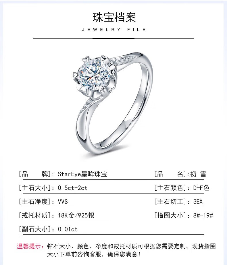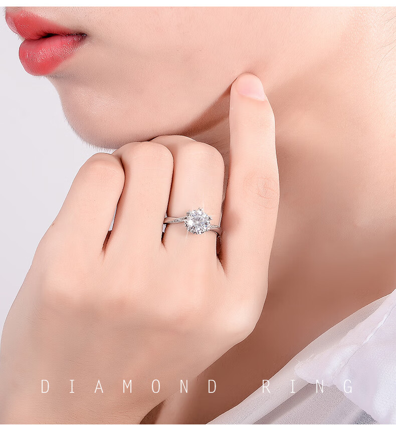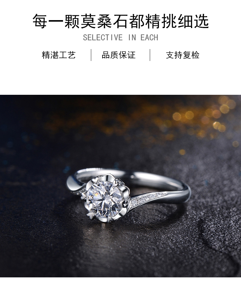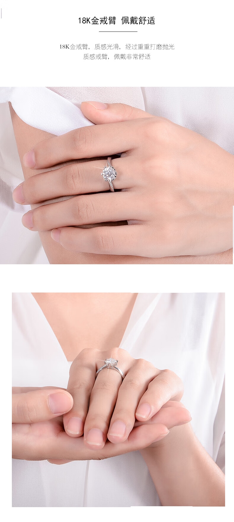 Star white 18k gold moissanite diamond six-claw snowflake twist arm diamond ring for women 1 carat wedding gift Chinese Valentine's Day platinum D color moissanite 1 carat - S925 9-20 circle can be noted