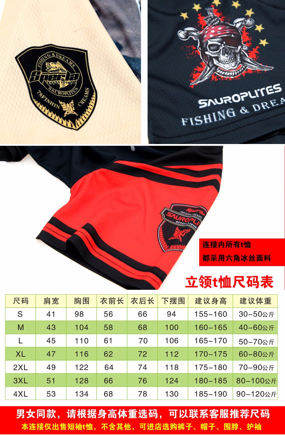 Ankylosaurus quick-drying short-sleeved men's summer stand-up collar half-sleeved clothes fishing sunscreen ice silk T-shirt ultra-thin, light, breathable and soft B2 pirate style L