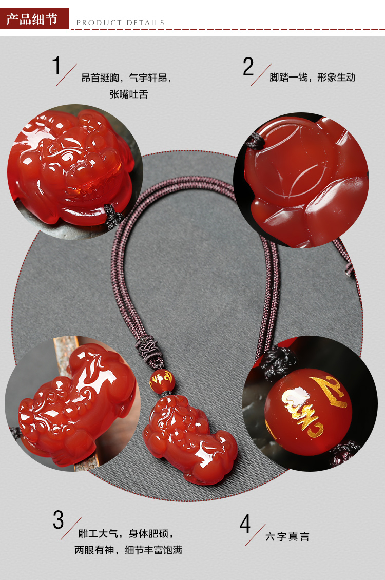 Ciling Pavilion red agate Pixiu pendant Pichu Pixiu jewelry pendant necklace animal year gift men and women amulet pendant