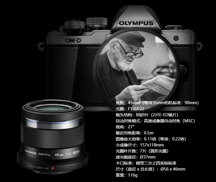OLYMPUS (OLYMPUS) M.ZUIKO DIGITAL 45mm F1.8 fixed focus portrait lens mirrorless lens background blur silver equivalent to 90mm