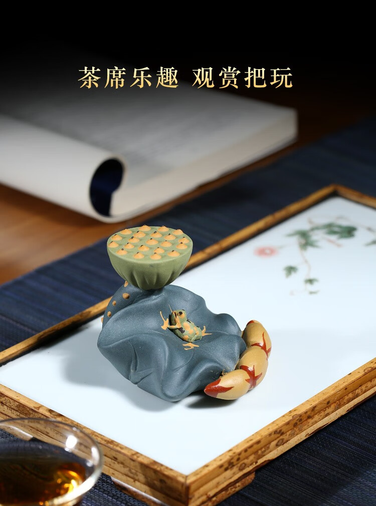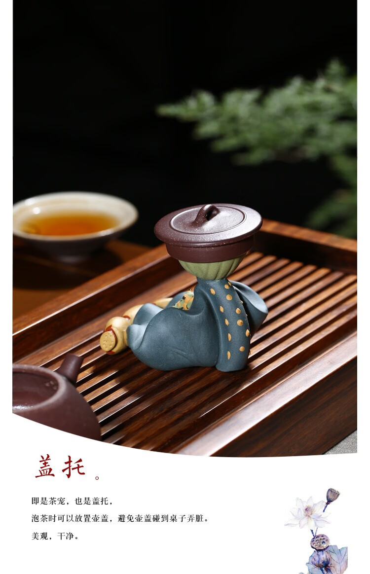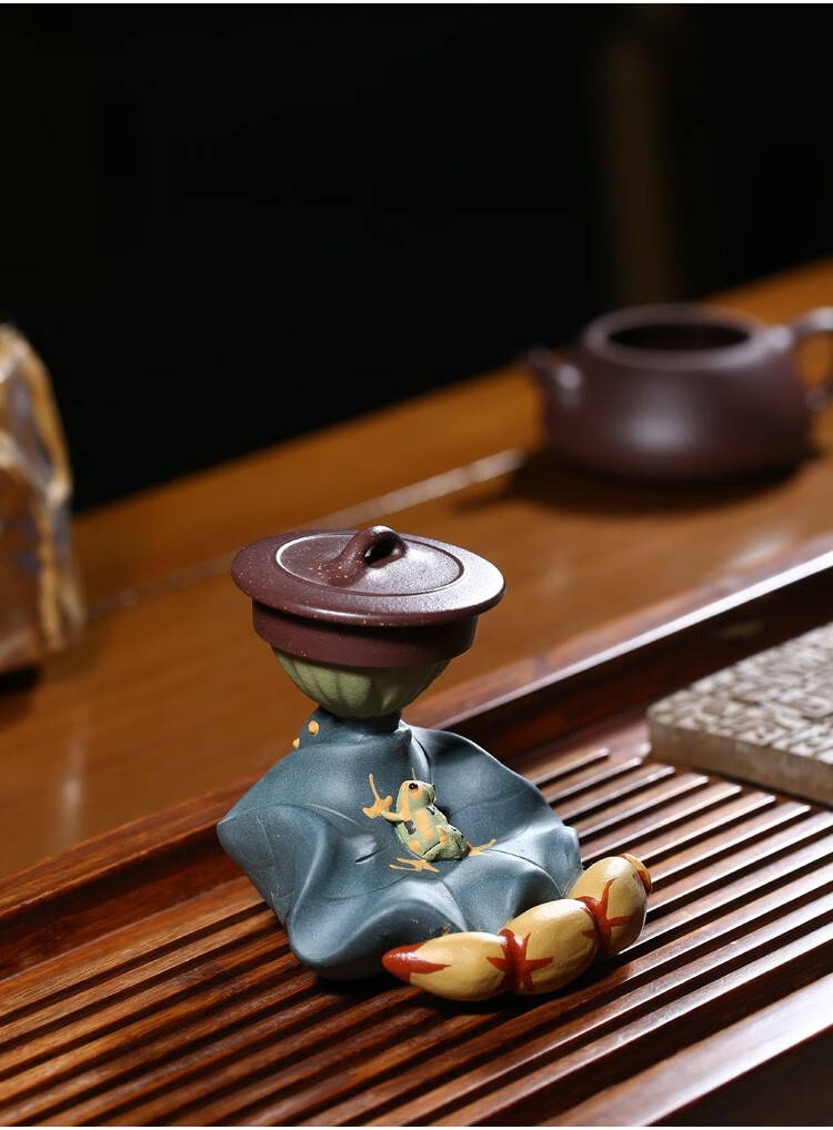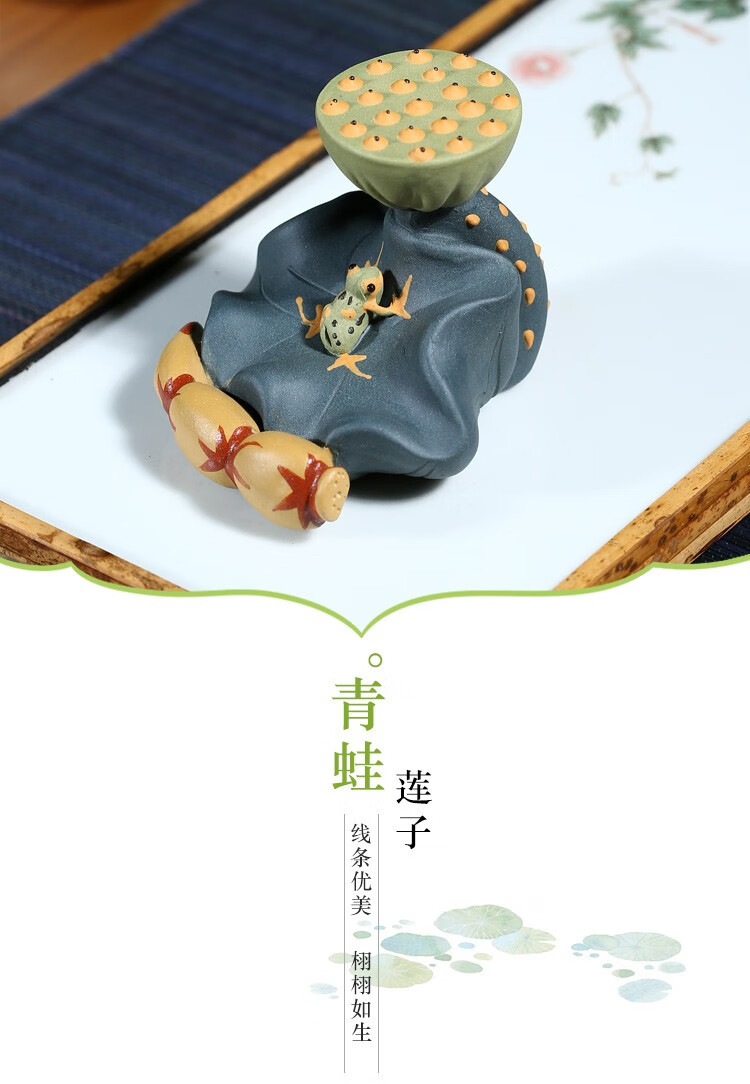 Fuyaji tea pet ornaments Yixing purple sand fully handmade boutique frog lotus seed lid holder tea set accessories