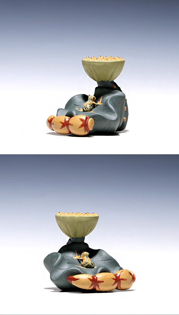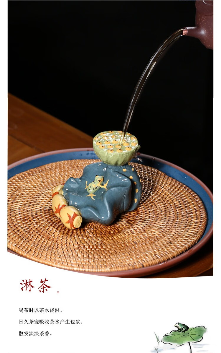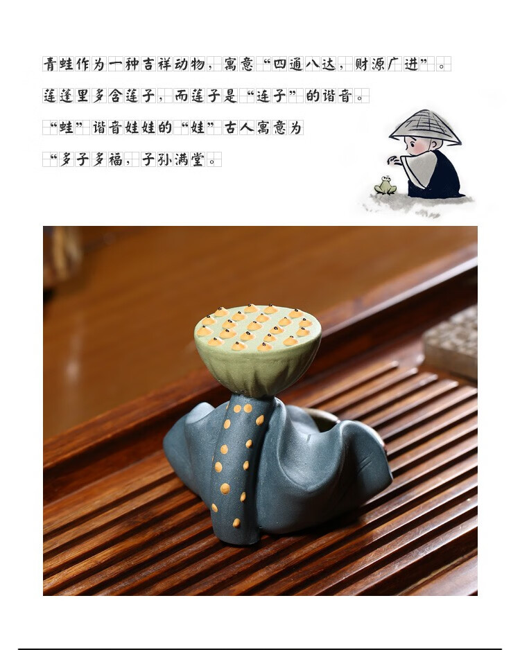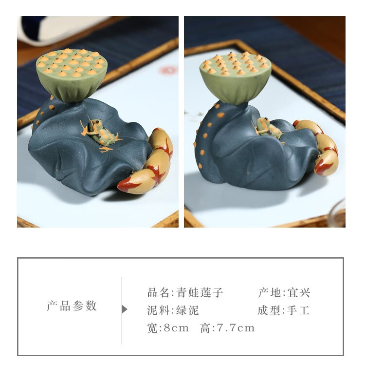 Fuyaji tea pet ornaments Yixing purple sand fully handmade boutique frog lotus seed lid holder tea set accessories