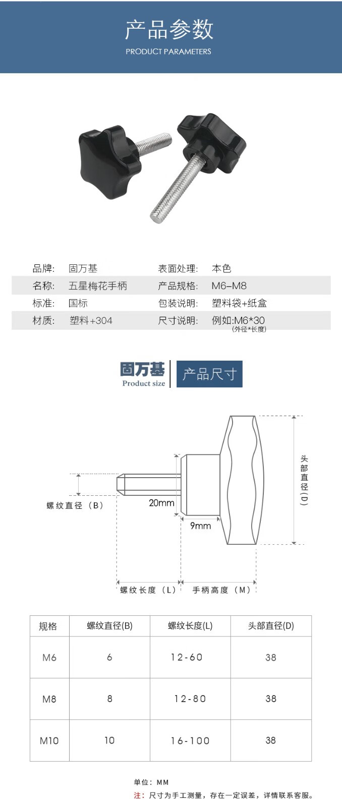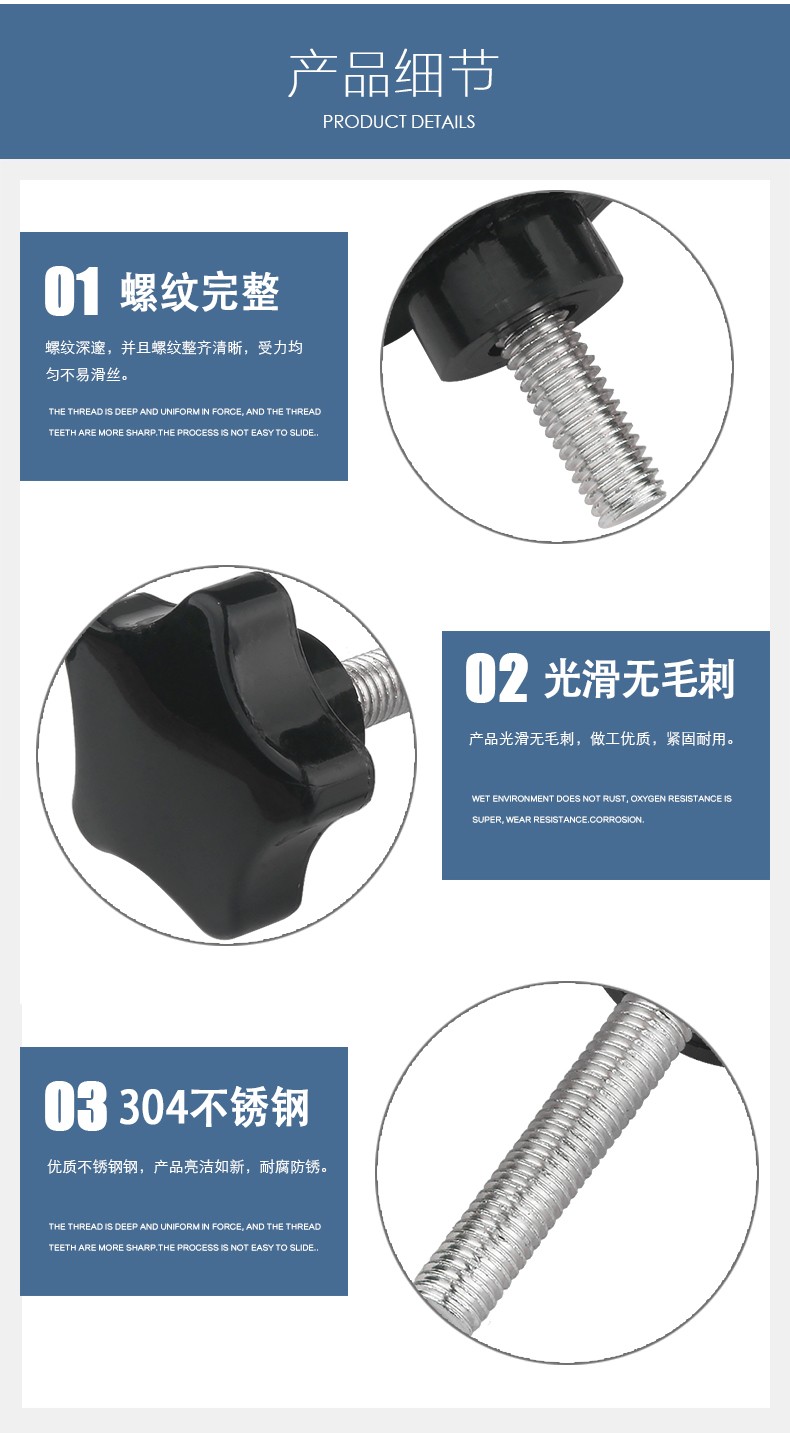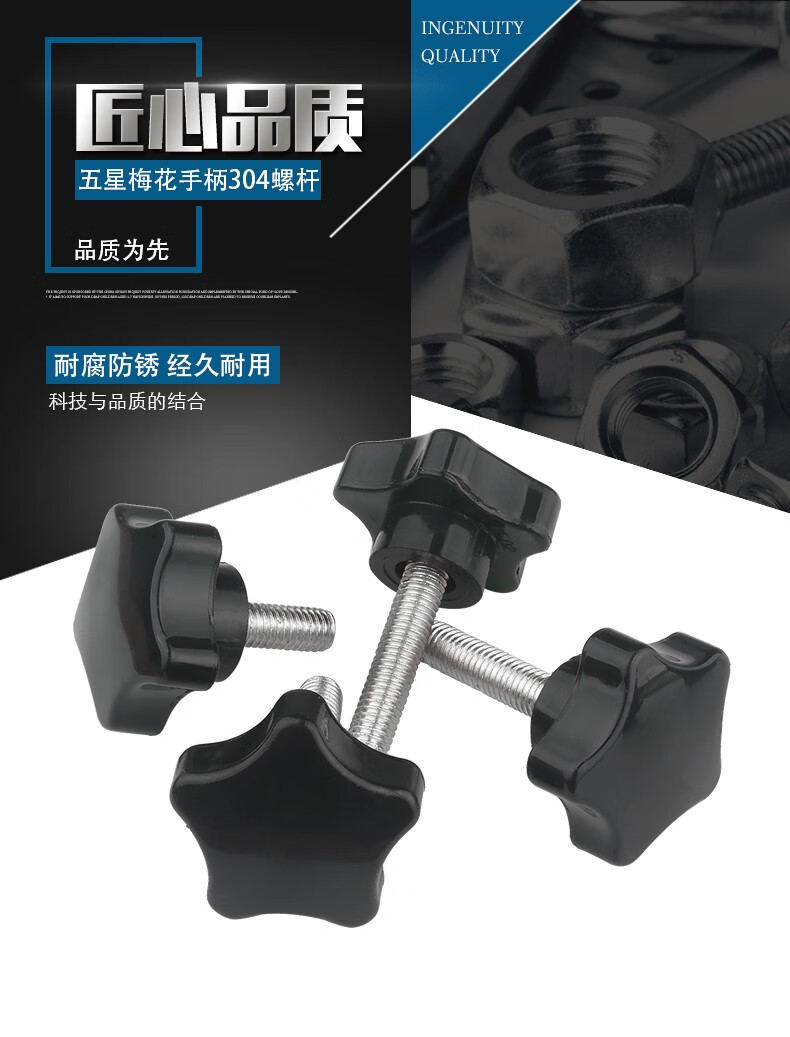 Guwanji 304 stainless steel plum blossom handle screws, five-star knob screws, stainless steel screw pentagonal screws, M6*16 (handle diameter 38mm) 5 pcs