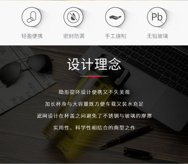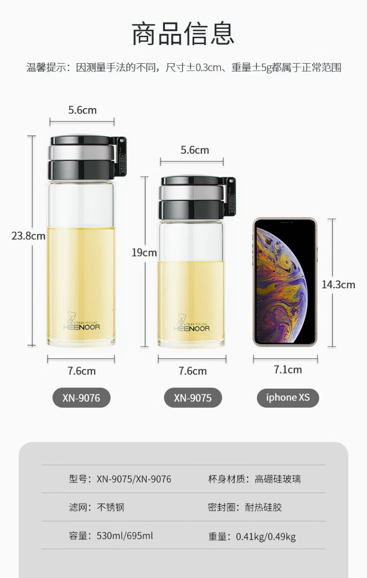 Xino single-layer glass large capacity portable sports water cup men's filtered tea cup XN-9076 695mL