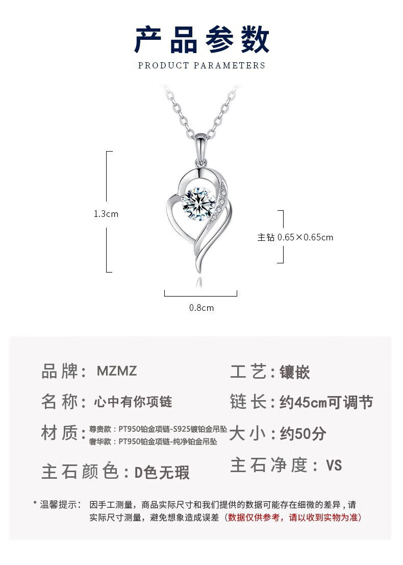 MZMZ platinum necklace women's jewelry pt950 platinum clavicle chain birthday Chinese Valentine's Day gift for girlfriend noble model - platinum flash O chain set with white diamonds