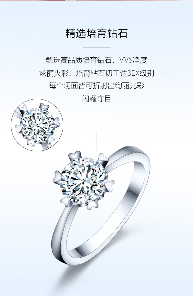 AVHE Platinum Diamond Ring Cultured Artificial Diamond Straight Arm Snowflake Real Diamond Ring New Wedding Gift Chinese Valentine's Day Platinum for Girlfriend Platinum Straight Arm Snowflake-70 Points D Color Cultured Diamond Ring No. 9-20 Available for Consultation