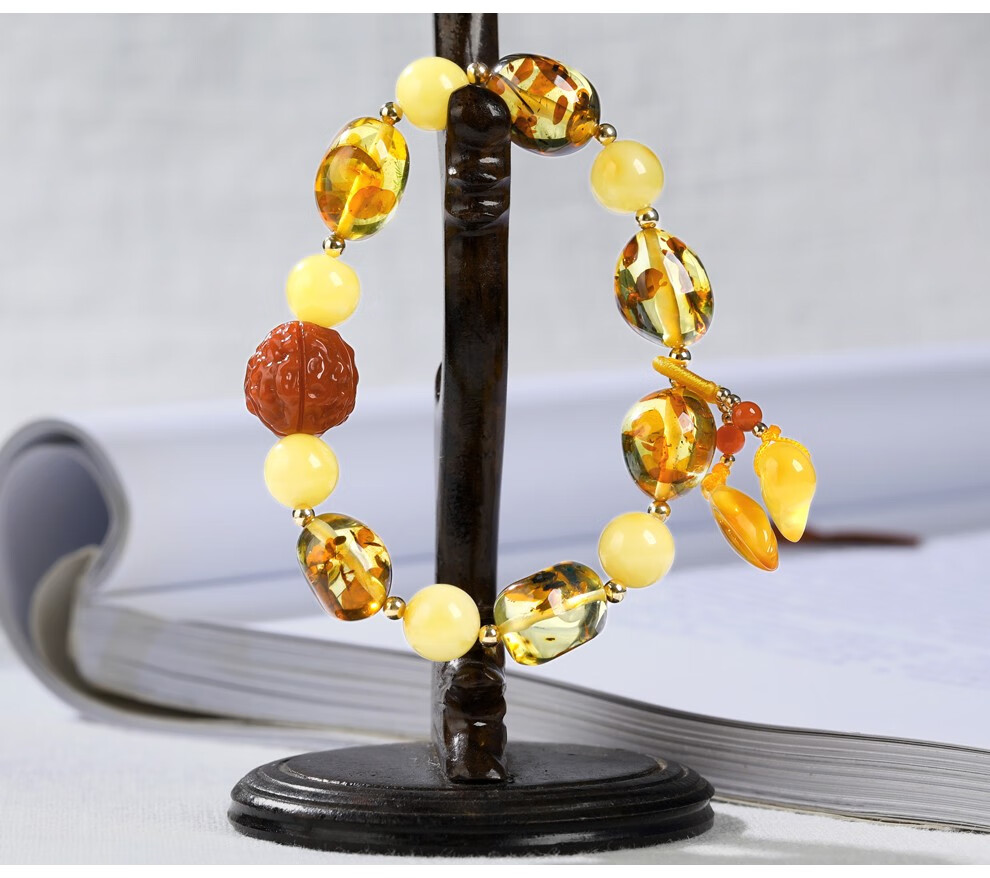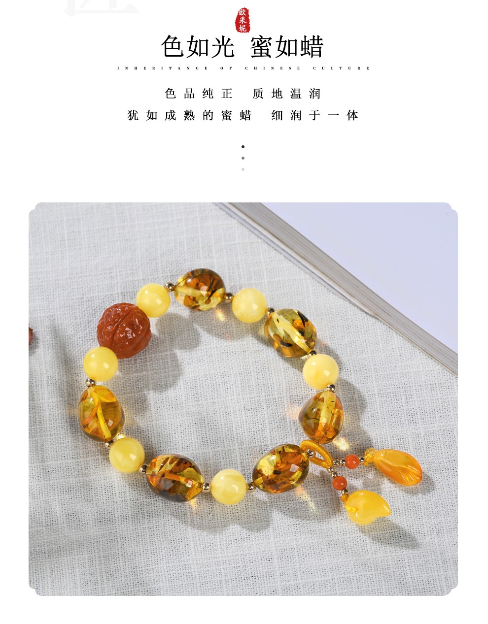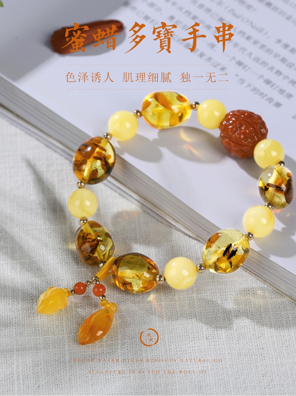 OUCERNY natural beeswax Duobao bracelet with shape amber chicken oil yellow beeswax bracelet southern red diamond with beeswax