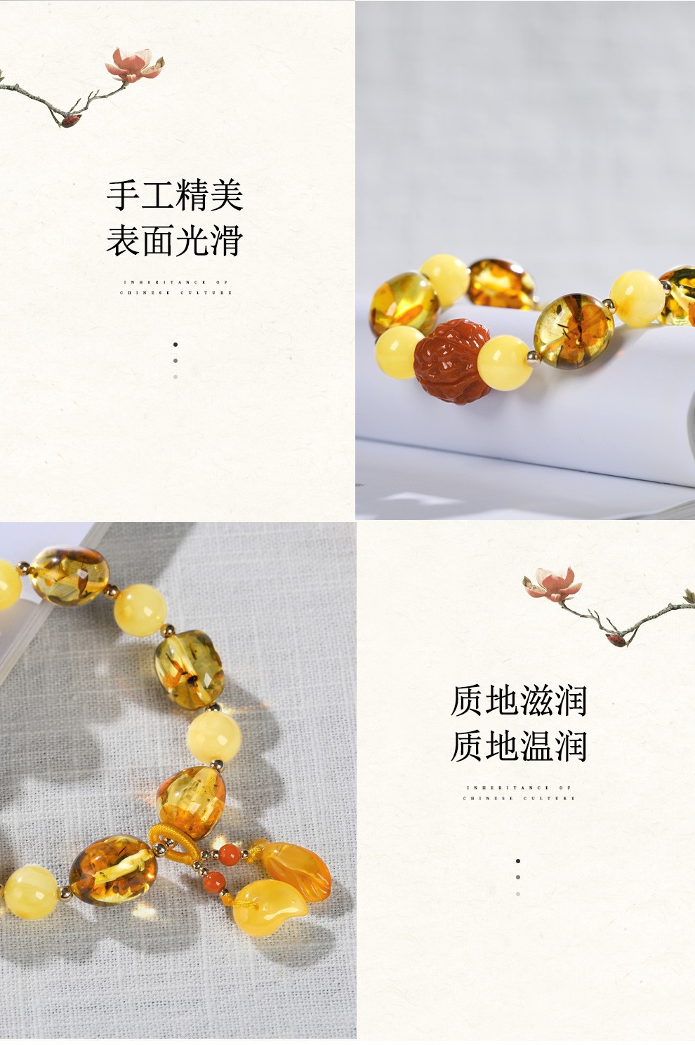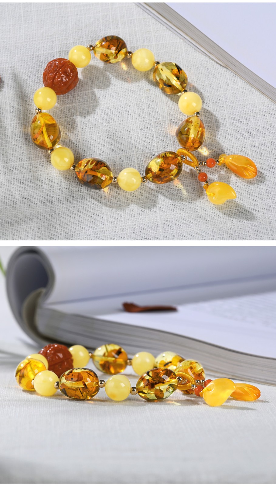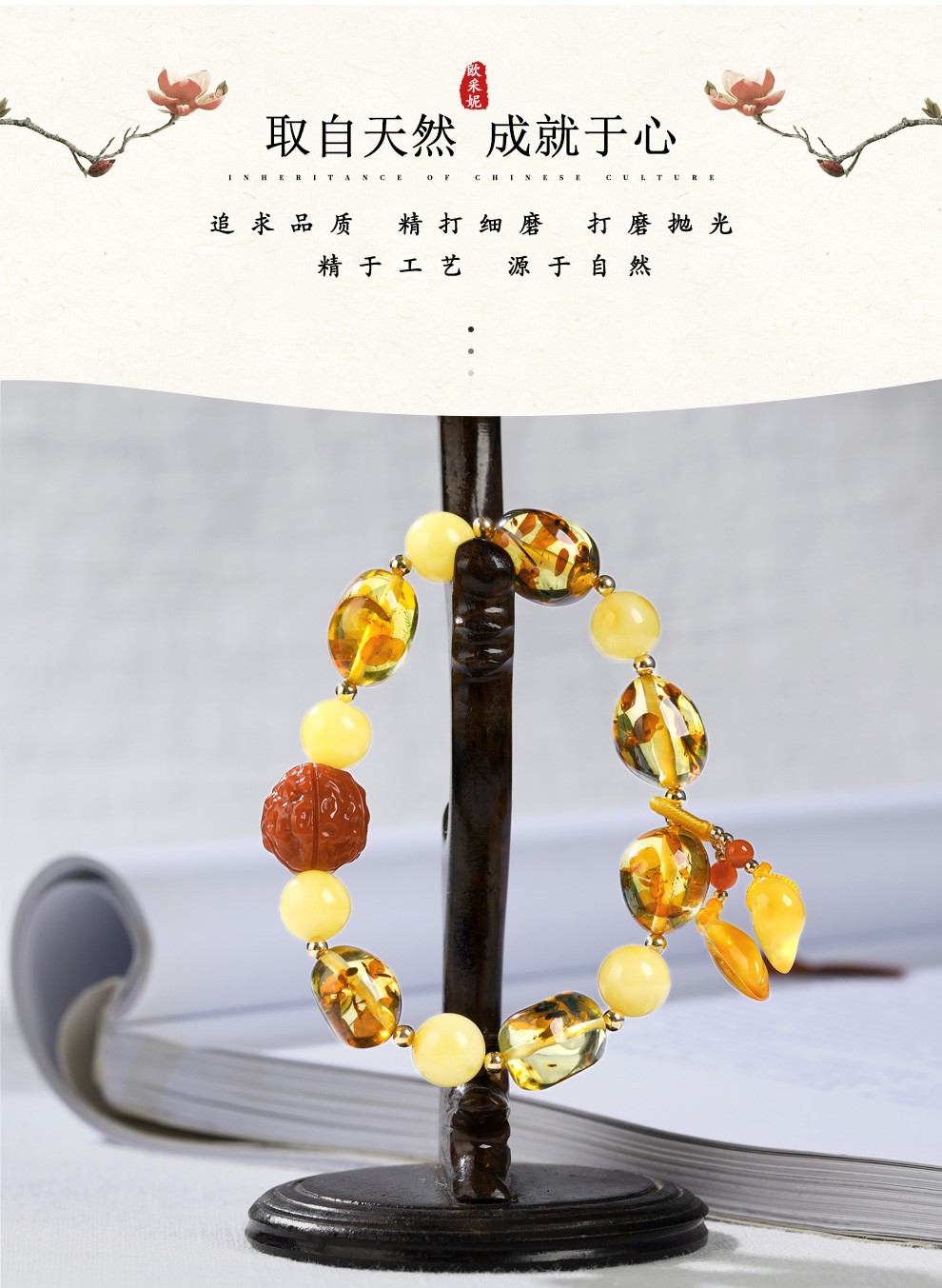 OUCERNY natural beeswax Duobao bracelet with shape amber chicken oil yellow beeswax bracelet southern red diamond with beeswax