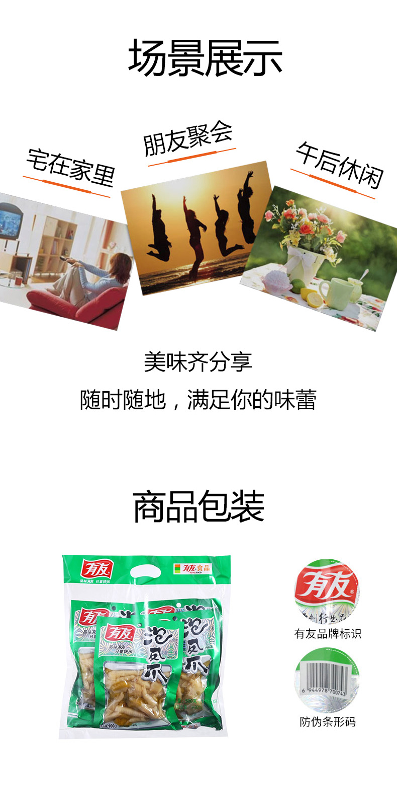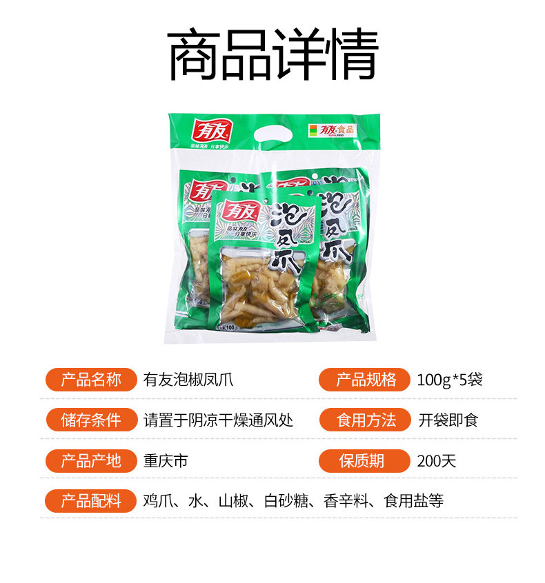Youyou Pickled Pepper Chicken Feet, Mountain Pepper Flavor 100g*5, Sharing Pack, Essential Snacks for Watching Dramas