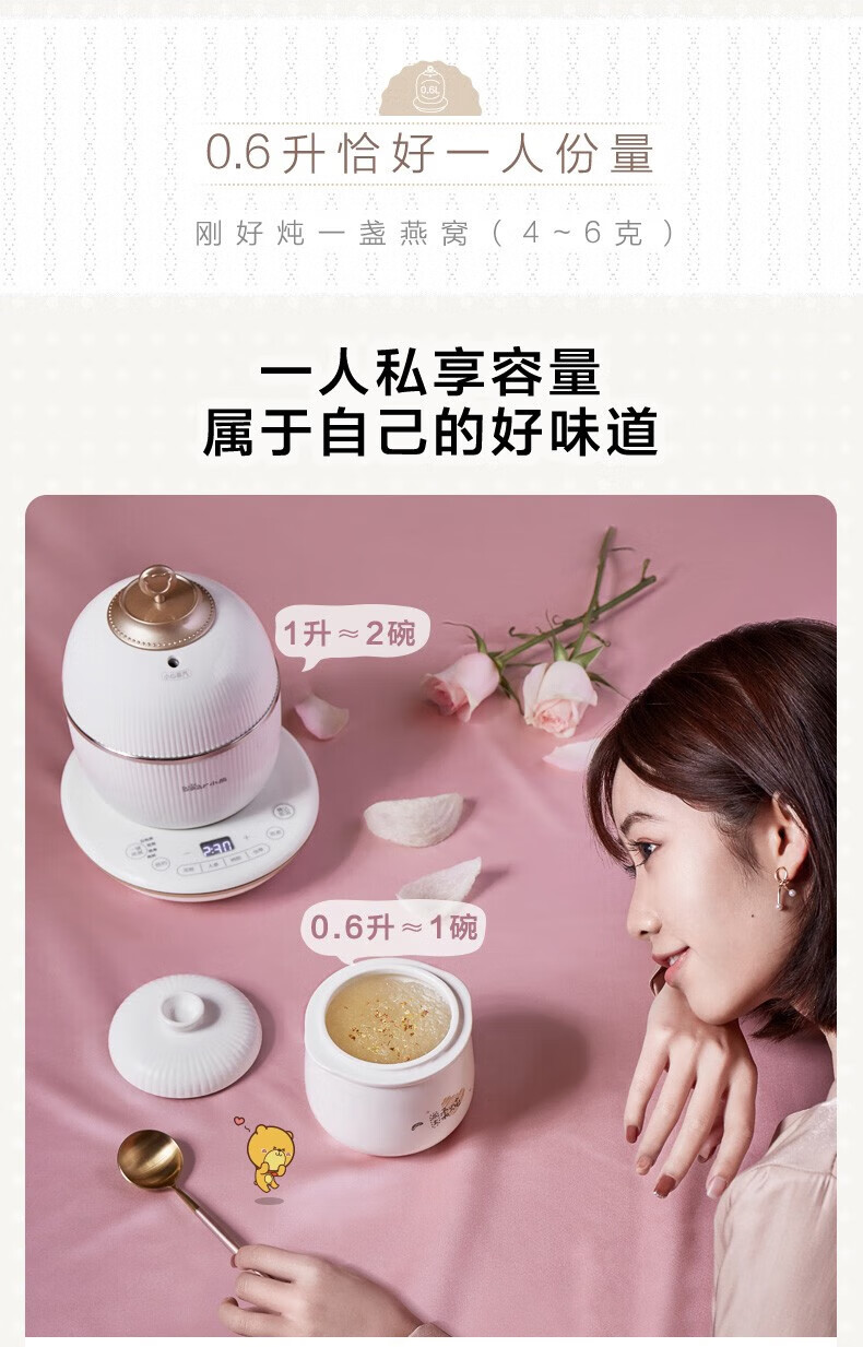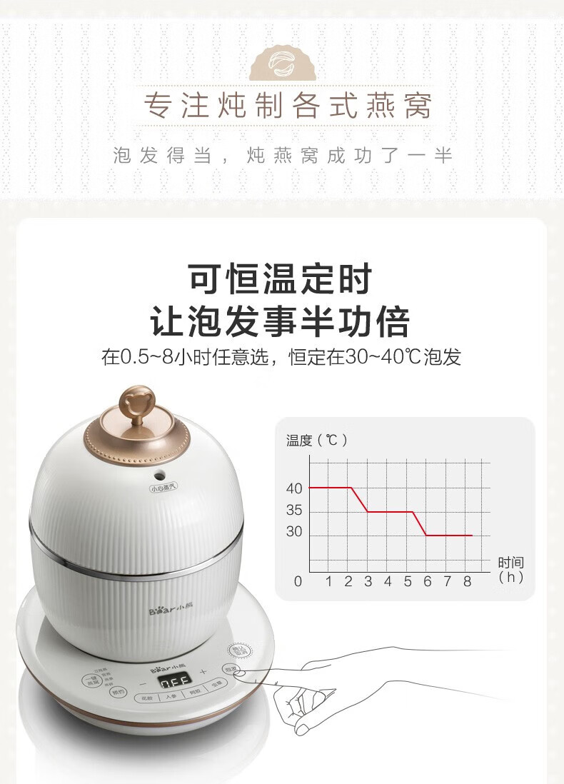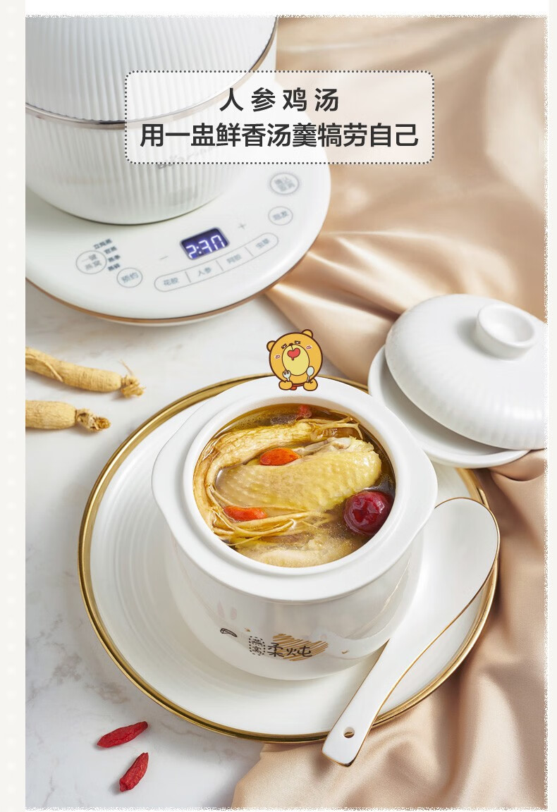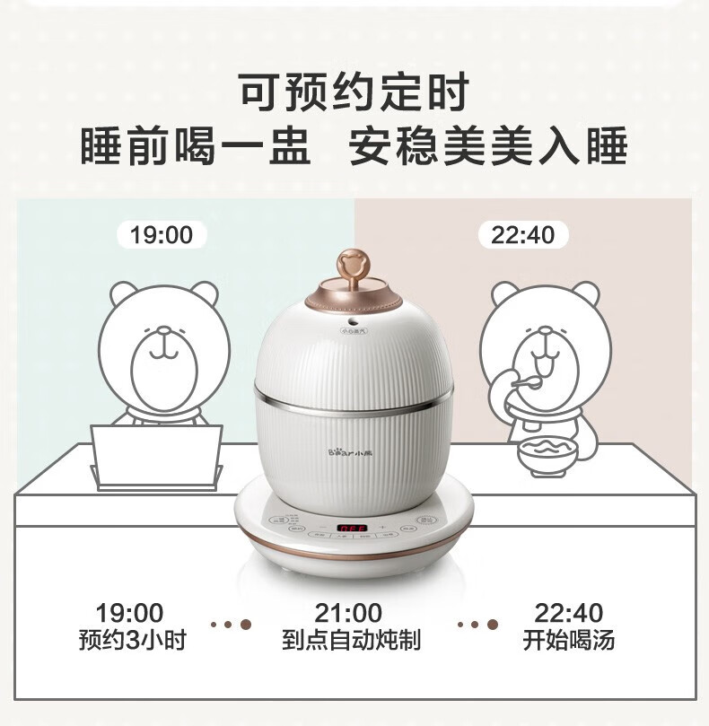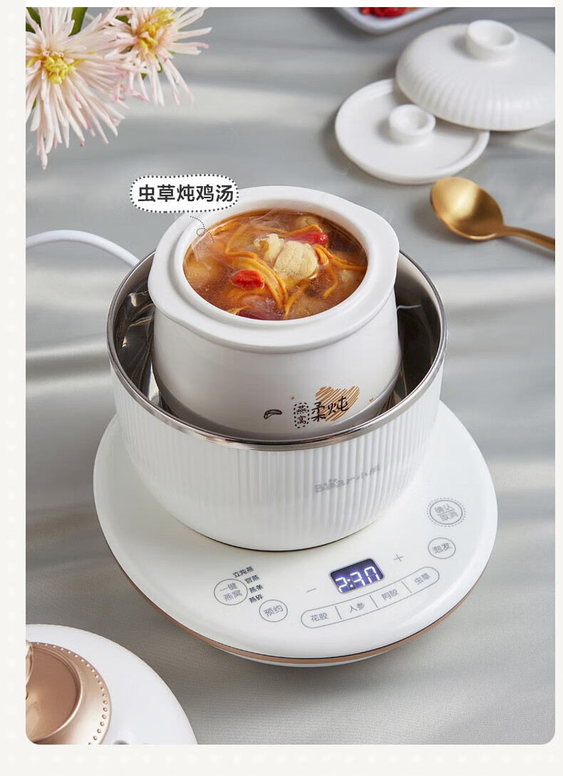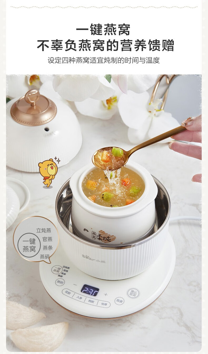 Bear bird's nest stew pot, electric stew pot for stewing bird's nest, electric stew pot for stewing bird's nest, fish gelatin, ginseng material, and donkey-hide gelatin, double-layer water-proof stew pot for health preservation, scheduled timer, constant and precise temperature control, 0.6L, upgraded to one cup for dual use 0.6L