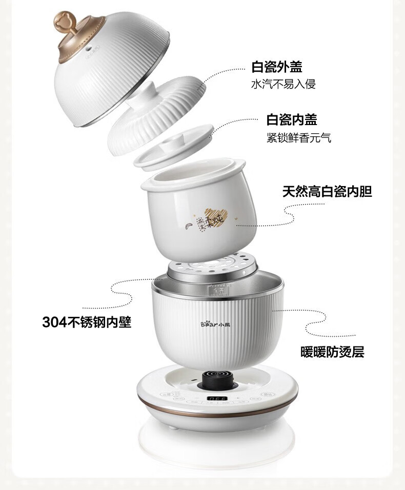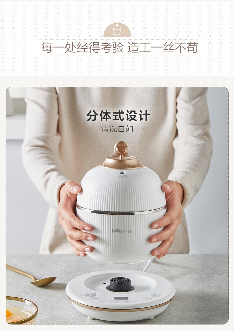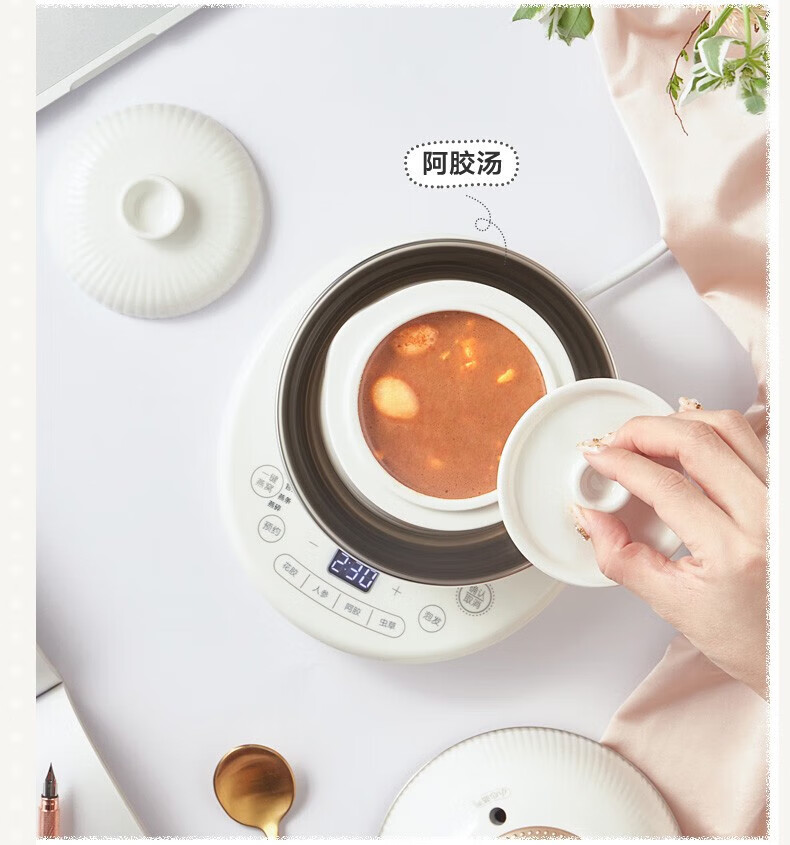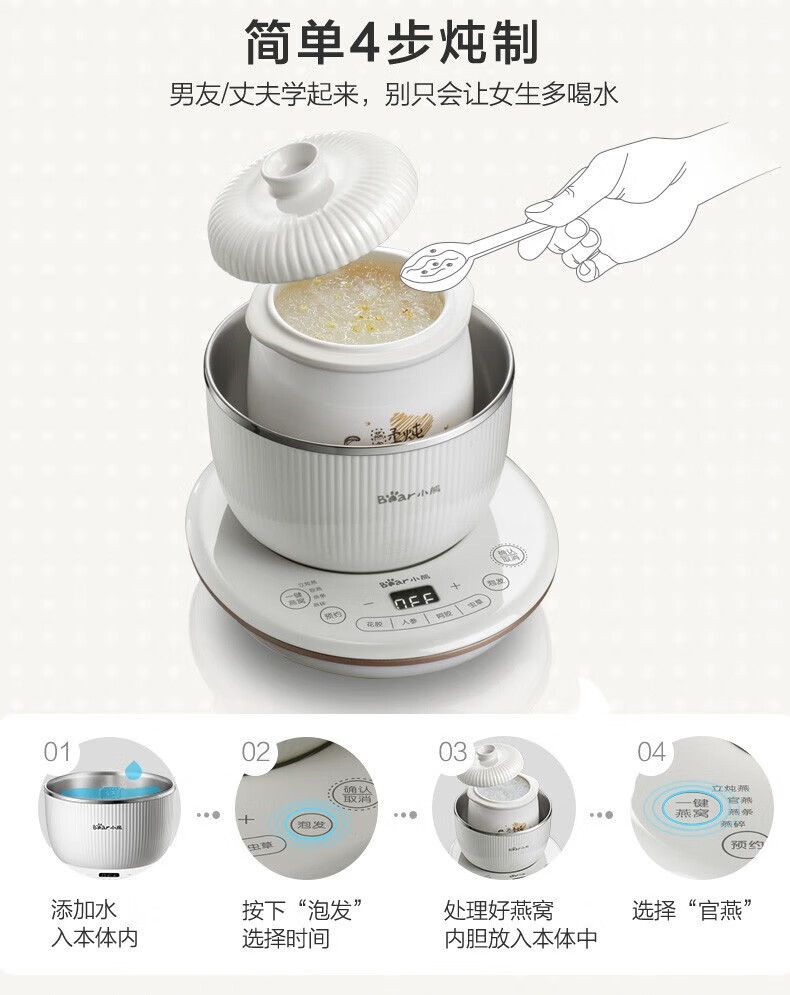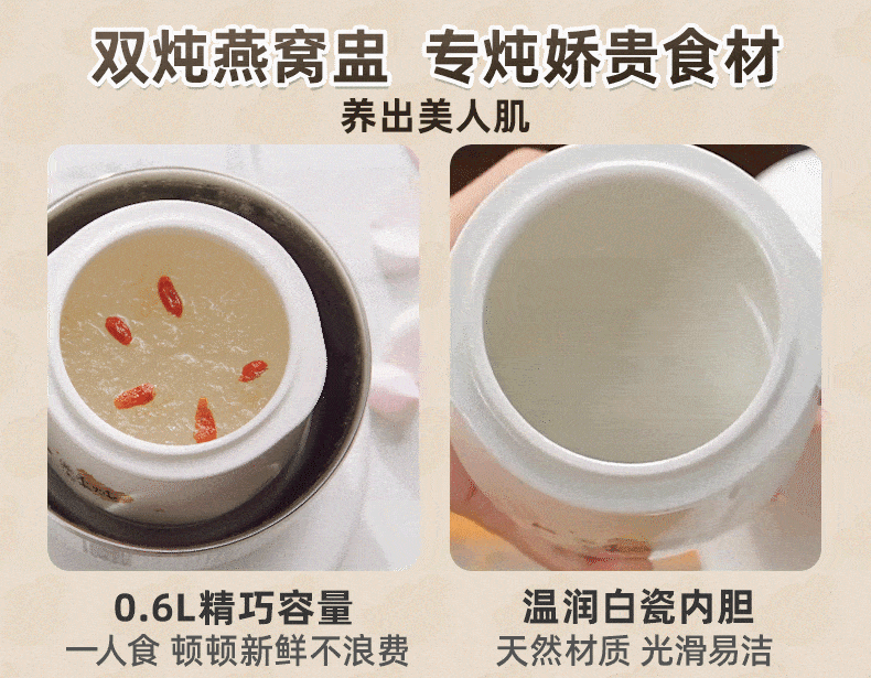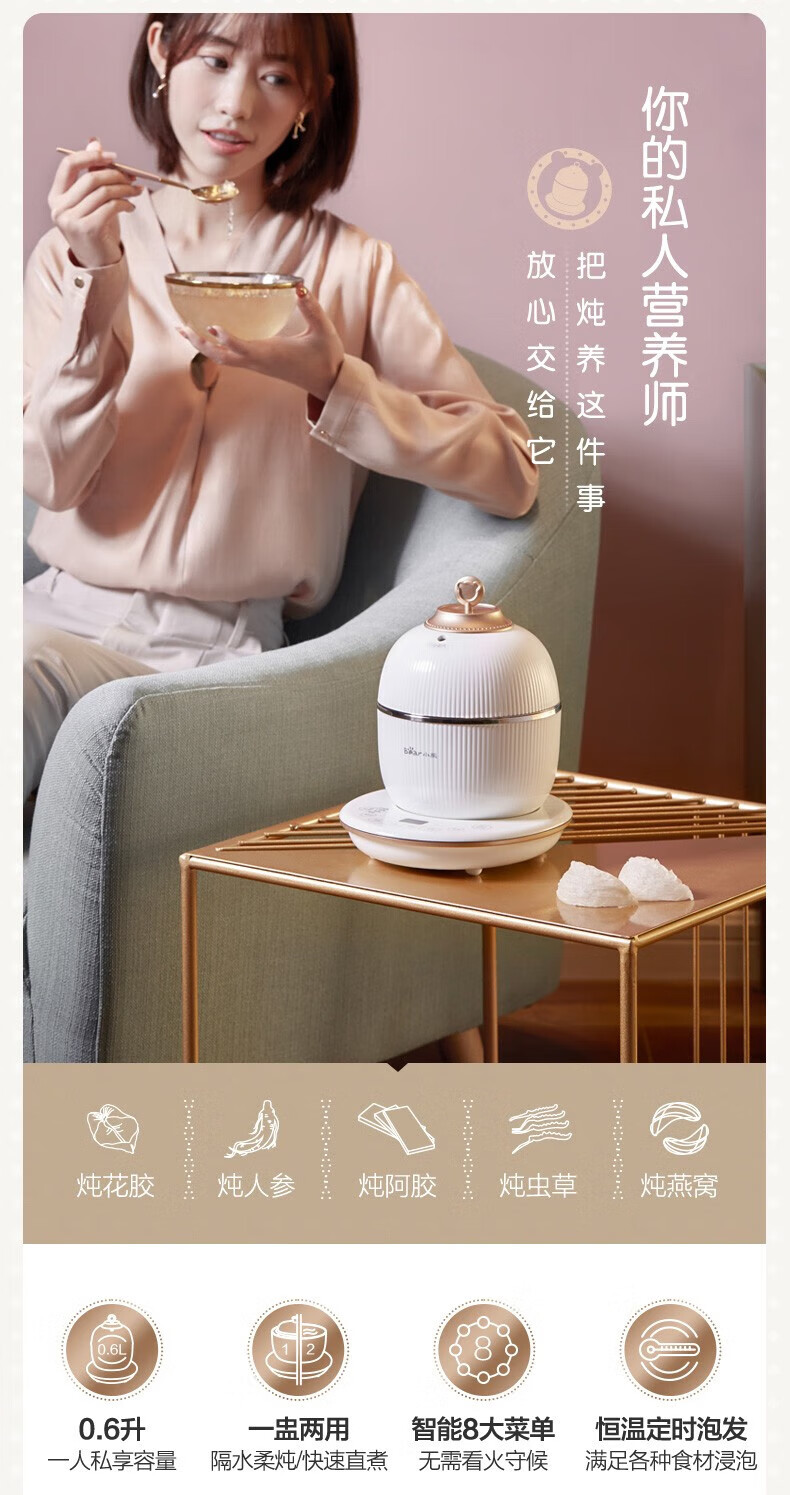 Bear bird's nest stew pot, electric stew pot for stewing bird's nest, electric stew pot for stewing bird's nest, fish gelatin, ginseng material, and donkey-hide gelatin, double-layer water-proof stew pot for health preservation, scheduled timer, constant and precise temperature control, 0.6L, upgraded to one cup for dual use 0.6L