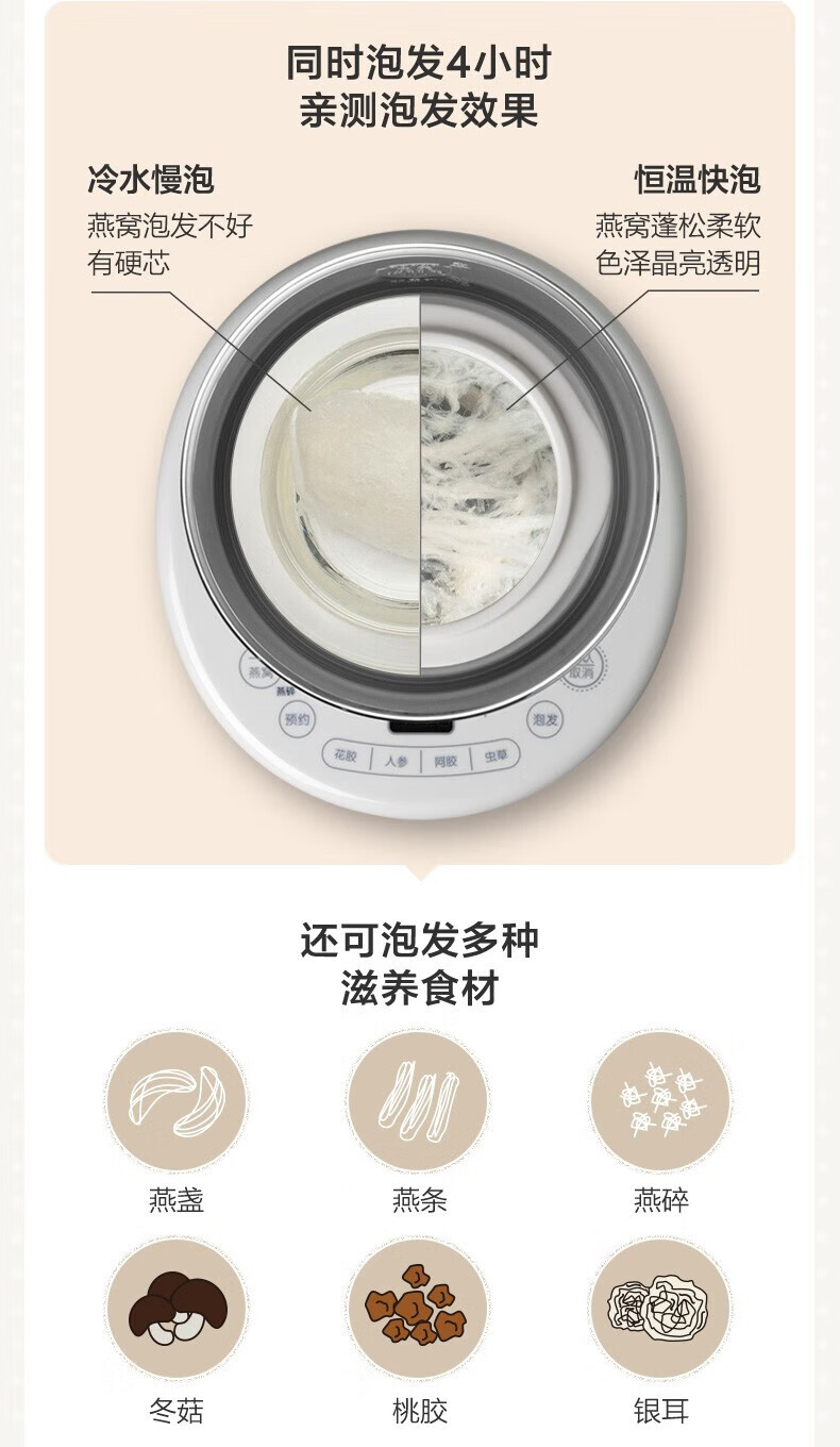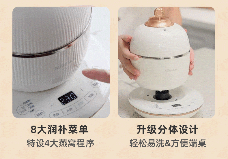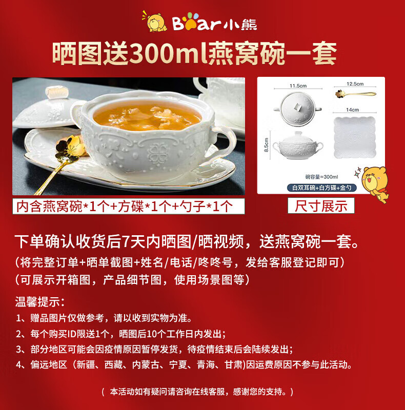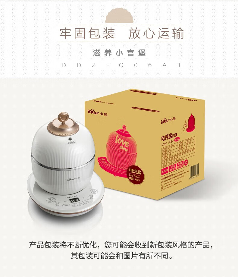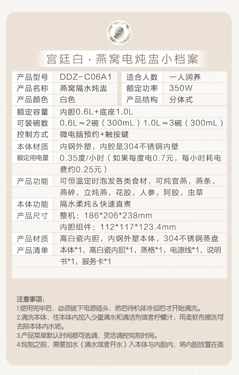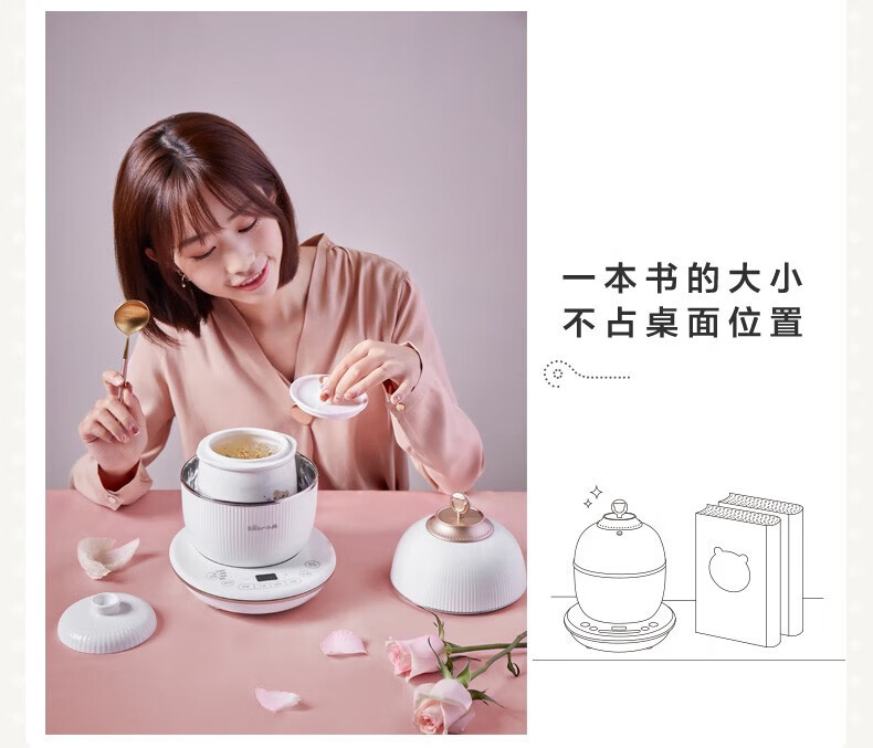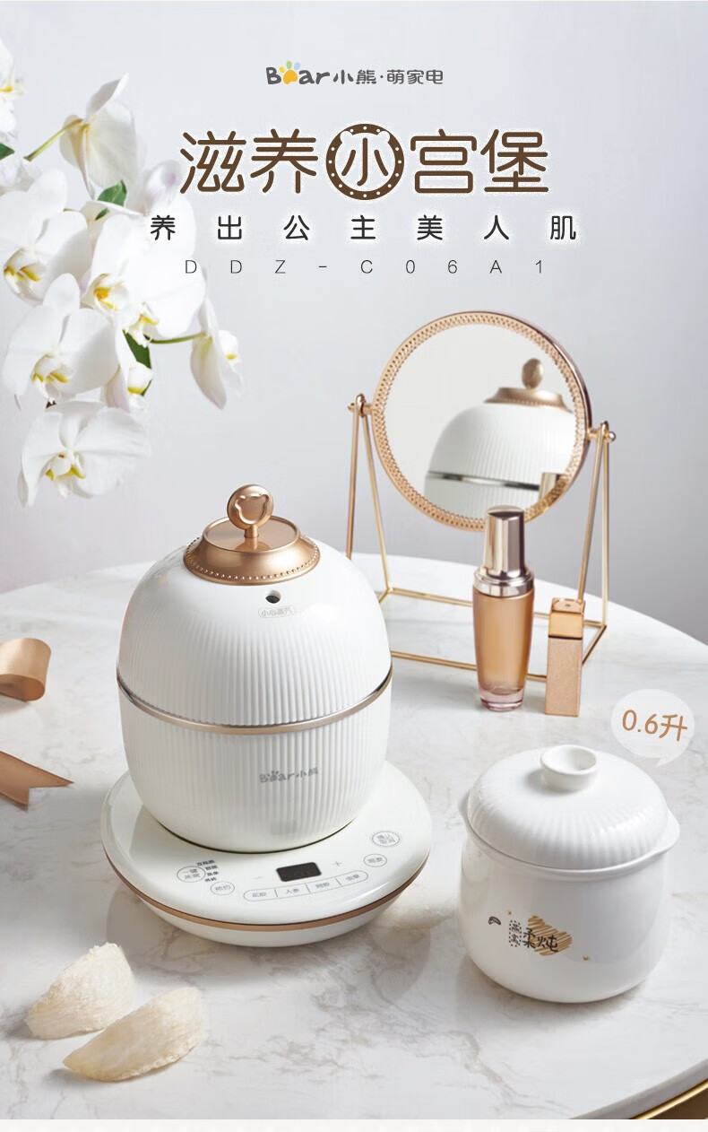 Bear bird's nest stew pot, electric stew pot for stewing bird's nest, electric stew pot for stewing bird's nest, fish gelatin, ginseng material, and donkey-hide gelatin, double-layer water-proof stew pot for health preservation, scheduled timer, constant and precise temperature control, 0.6L, upgraded to one cup for dual use 0.6L