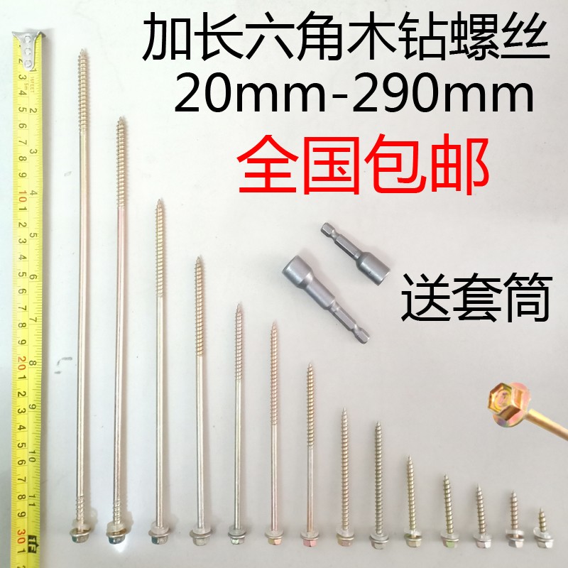 HENHOOL Extended wood screws, external hexagonal self-tapping screws, Washer tip self-tapping drills, wood screws, flange surface wood drills, 12#*100mm long, 1 Jin Jin equals 0.5 kg, about 53 pcs