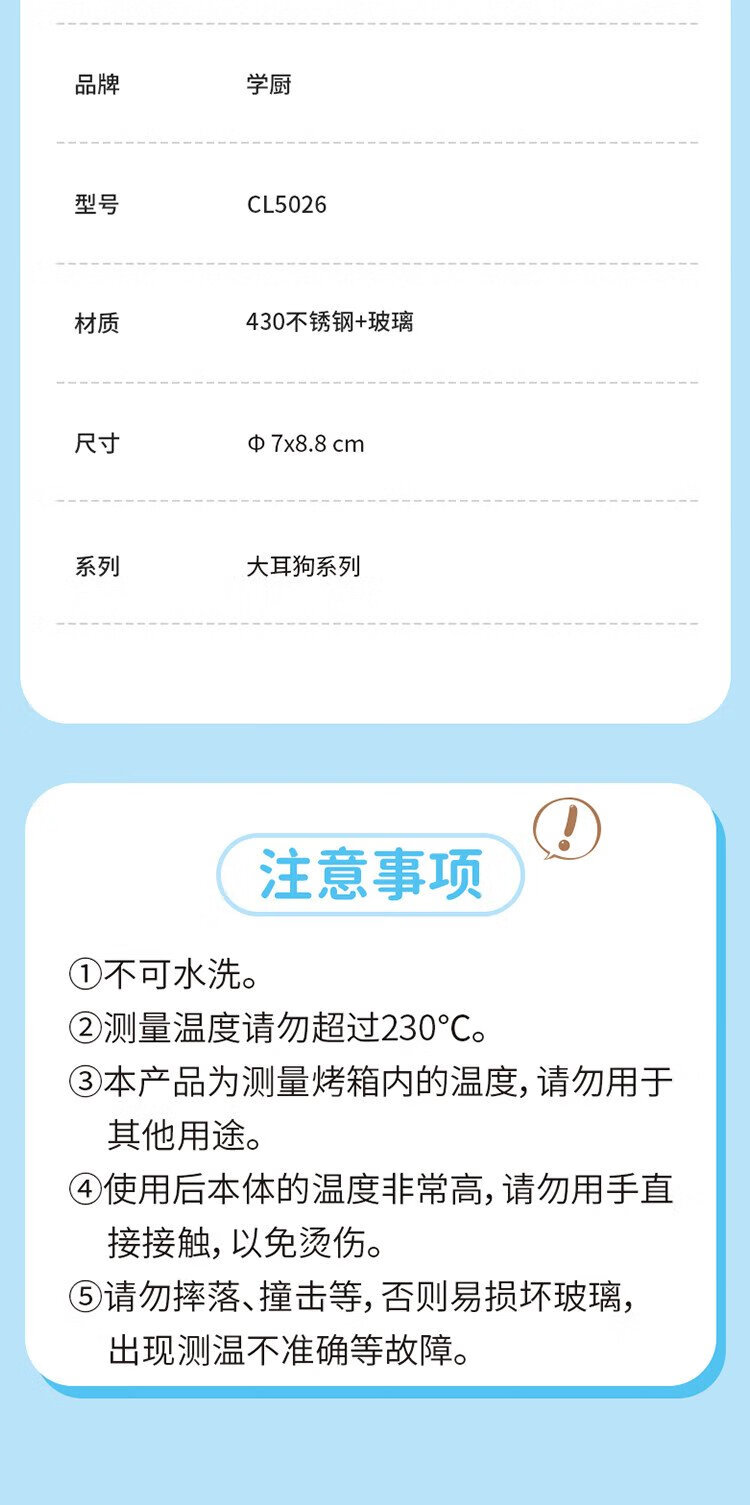 Xuechu Yugui Dog genuine authorized hanging kitchen oven thermometer high temperature resistant CL5026