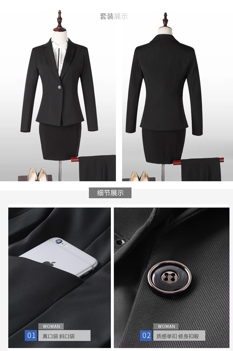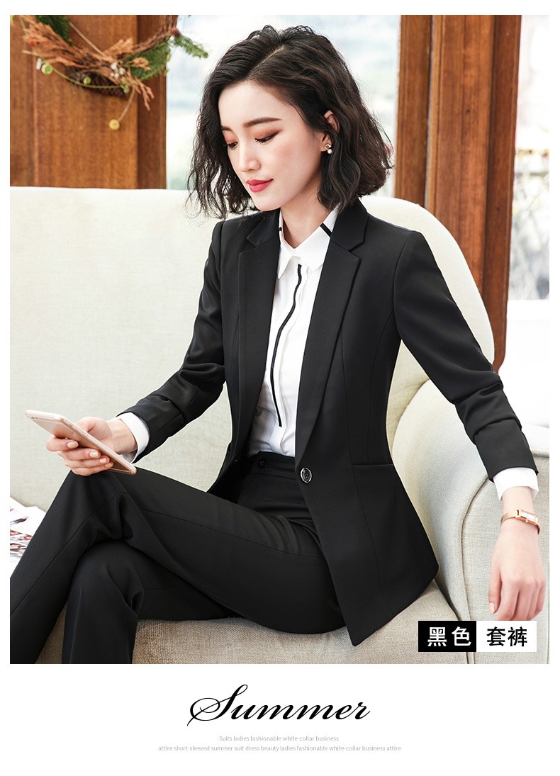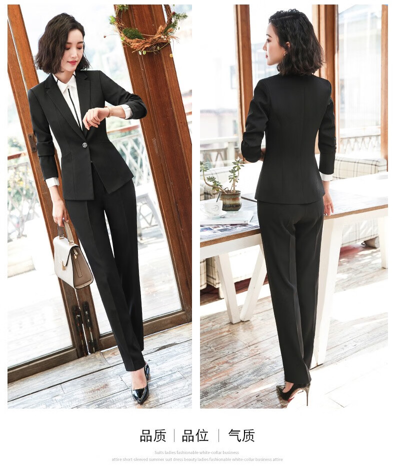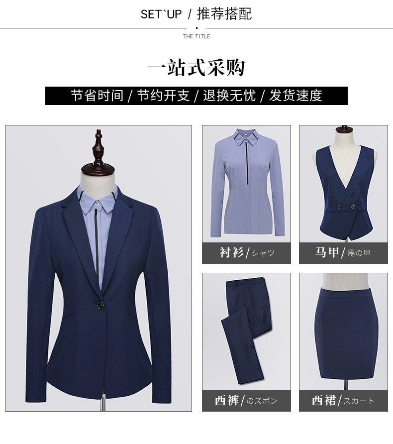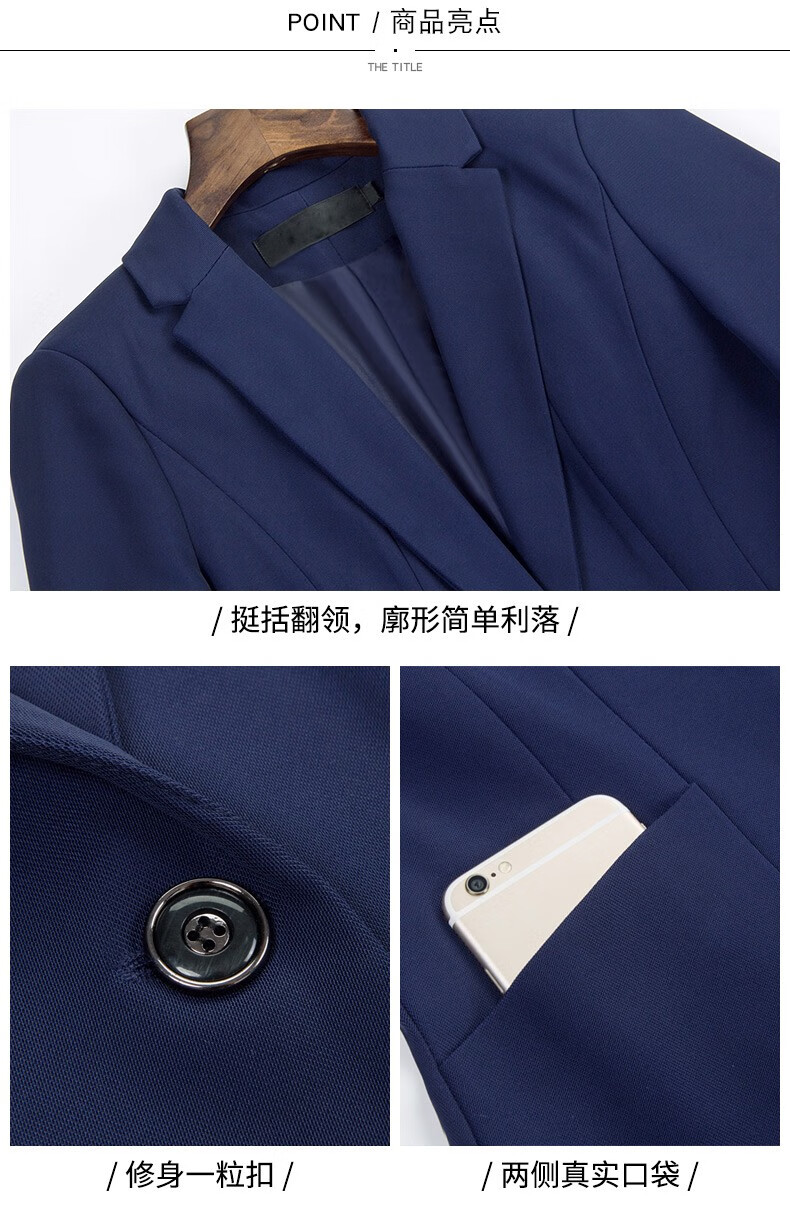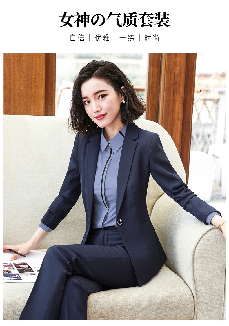 Jian Ting professional wear women's suit new fashion spring and autumn temperament women's suit work clothes suit interview formal work wear navy blue suit + trousers L