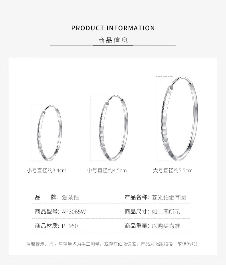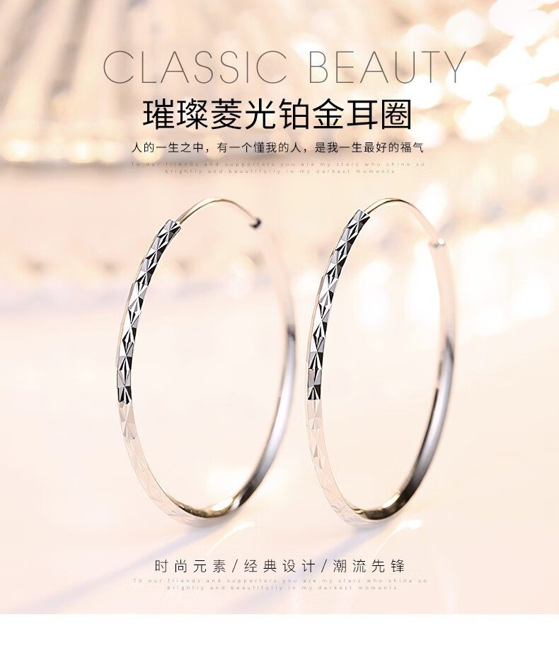 Aido Diamond Platinum Large Earrings pt950 Platinum Earrings Women's Light Luxury Personalized Earrings Exaggerated European and American Style Small Pair 6.0-6.2g Diameter Approximately 4.4cm