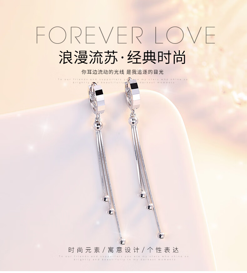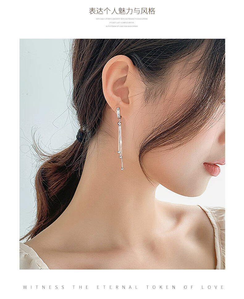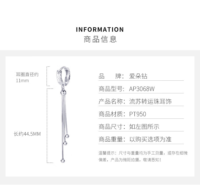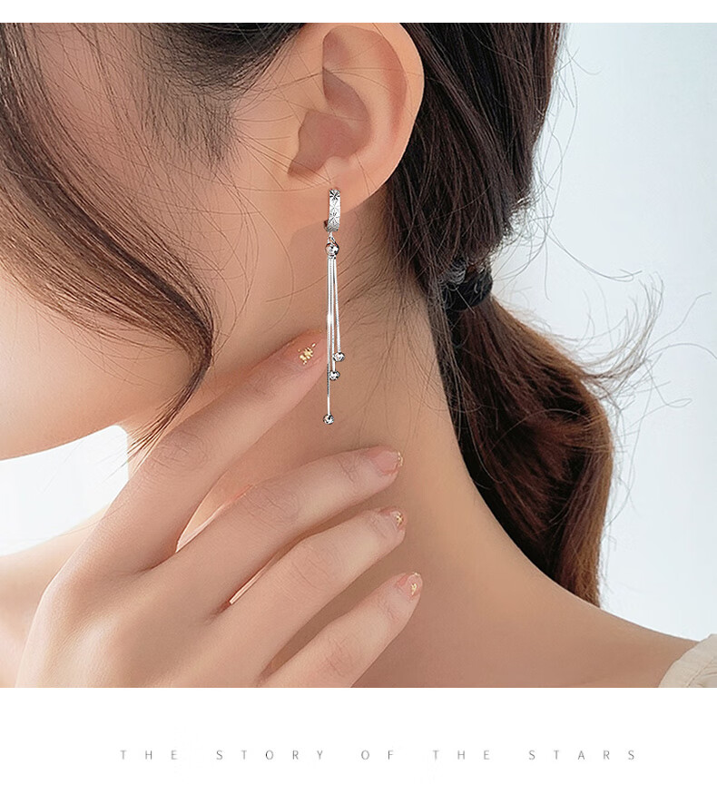Aidozuan pt950 long tassel platinum earrings for women, fashionable platinum earrings, turned beads, weight 3.4-3.6 grams + delivery certificate