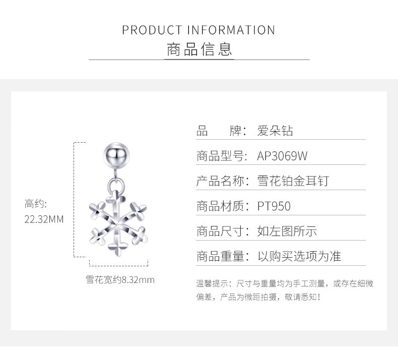 Aido Diamond pt950 earrings for women, platinum earrings, platinum earrings for women, romantic snowflake earrings for my wife, weighing 2.9-3.1 grams + delivery certificate