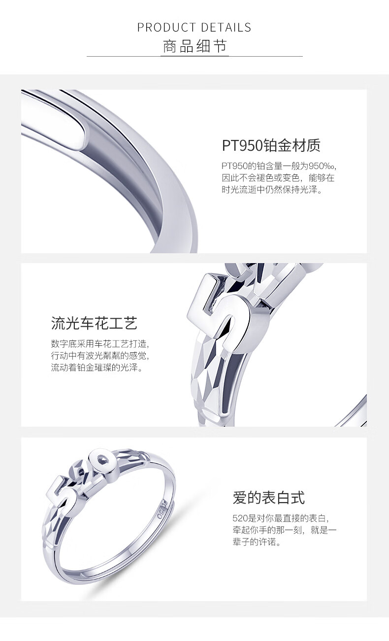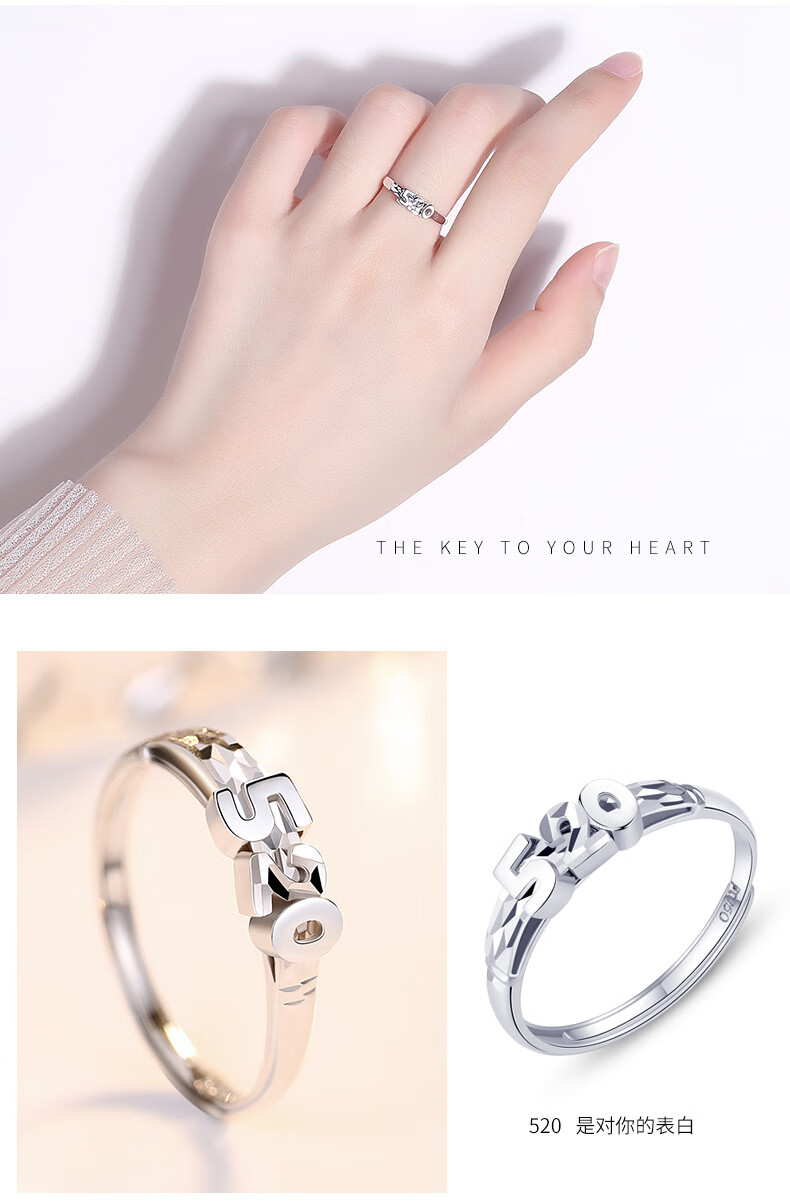 Aido Diamond pt950 platinum 520 ring women's platinum live adjustable ring gift for wife, weight 2.6-2.8 grams + free engraving