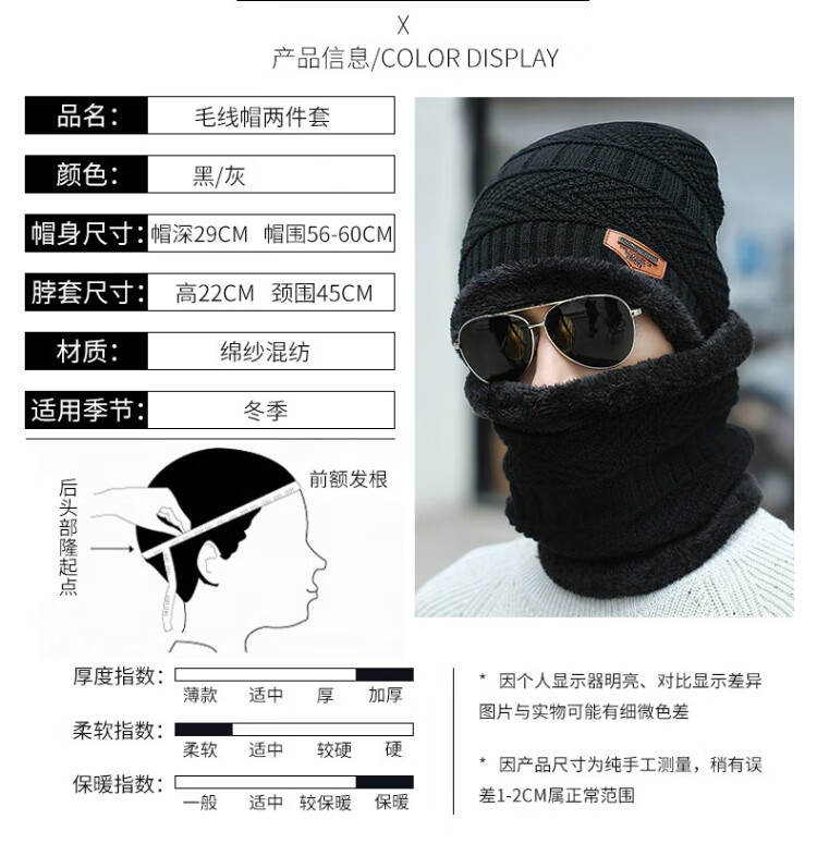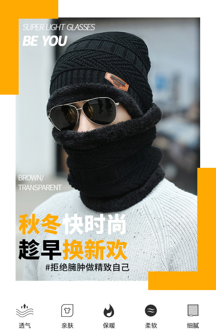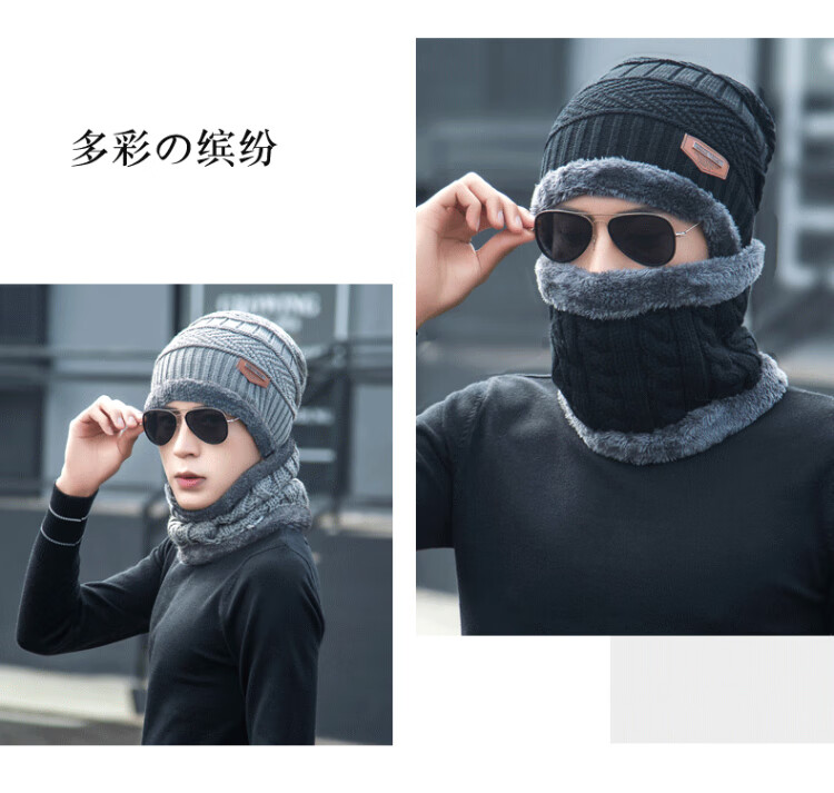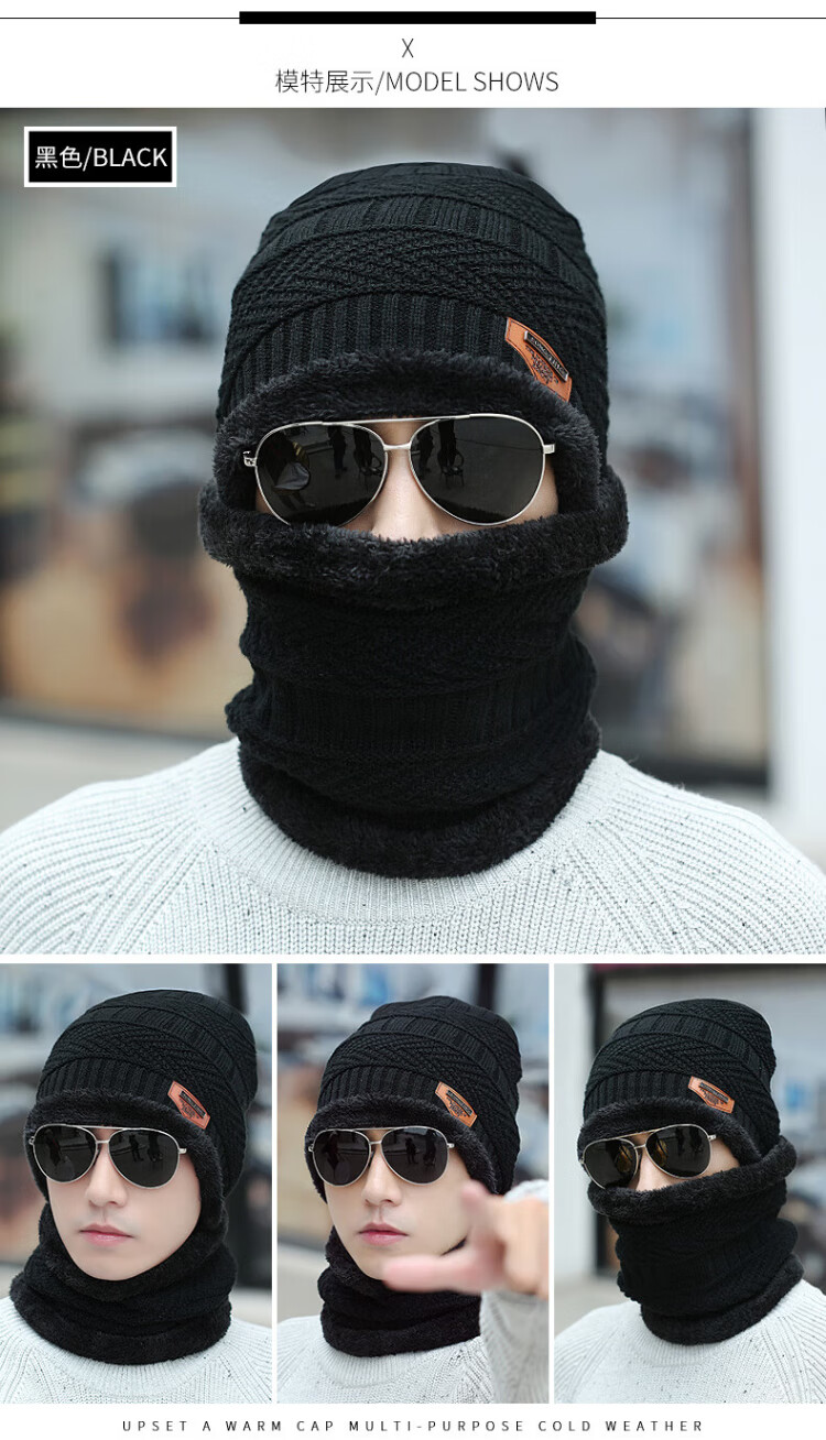 Magic Wheel (Move iron) hat for men and women in autumn and winter, warm plus velvet and thickened woolen hat, neck scarf, outdoor cycling, cold-proof neck collar hat, black